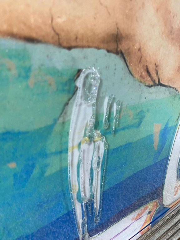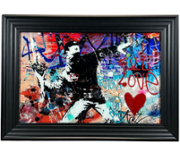 The liquid art technique infuses dynamic movement and depth into the composition, enhancing its visual impact and creating a mesmerizing effect. Encased within a sleek chrome frame, "One Love" radiates contemporary elegance and sophistication, making it a captivating focal point in any space.