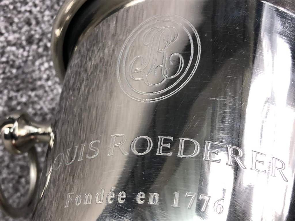 Perfect for champagne enthusiasts, collectors of fine barware, or anyone who appreciates the finer things in life, our chrome Louis Roederer champagne bucket is a timeless accessory that embodies the art of gracious entertaining.