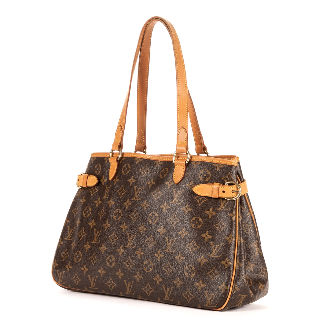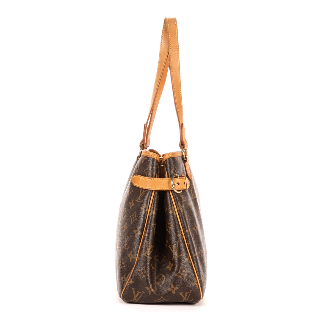 A vintage Louis Vuitton Batignolles bag crafted in the house’s iconic brown Monogram coated canvas, offering a timeless and practical silhouette designed for everyday use. The softly structured shape is complemented by natural leather trim, dual shoulder straps, and adjustable side buckle details, finished with gold-tone hardware. Measuring approximately 25cm in height and 37cm in width, it provides a spacious and well-balanced profile ideal for daily essentials.