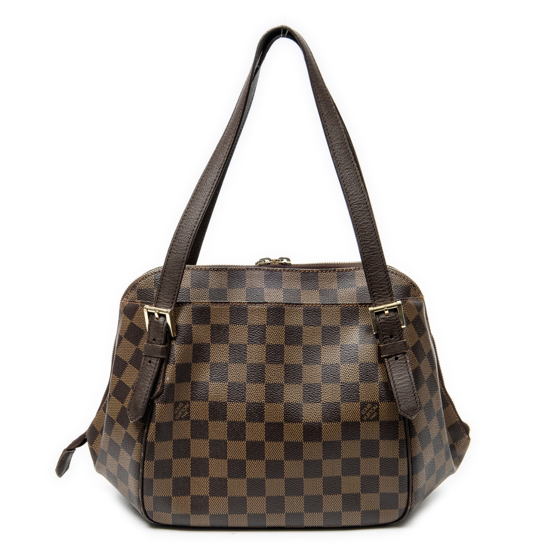 A vintage Louis Vuitton Belem bag crafted in the house’s signature brown Damier coated canvas, offering a structured yet feminine silhouette with everyday versatility. The softly curved shape is complemented by dark leather trim, dual shoulder straps with adjustable buckle detailing, and gold-tone hardware, while the secure double zip closure ensures practicality. Measuring approximately 24cm in height and 34cm in width, it provides a well-balanced size ideal for daily essentials.