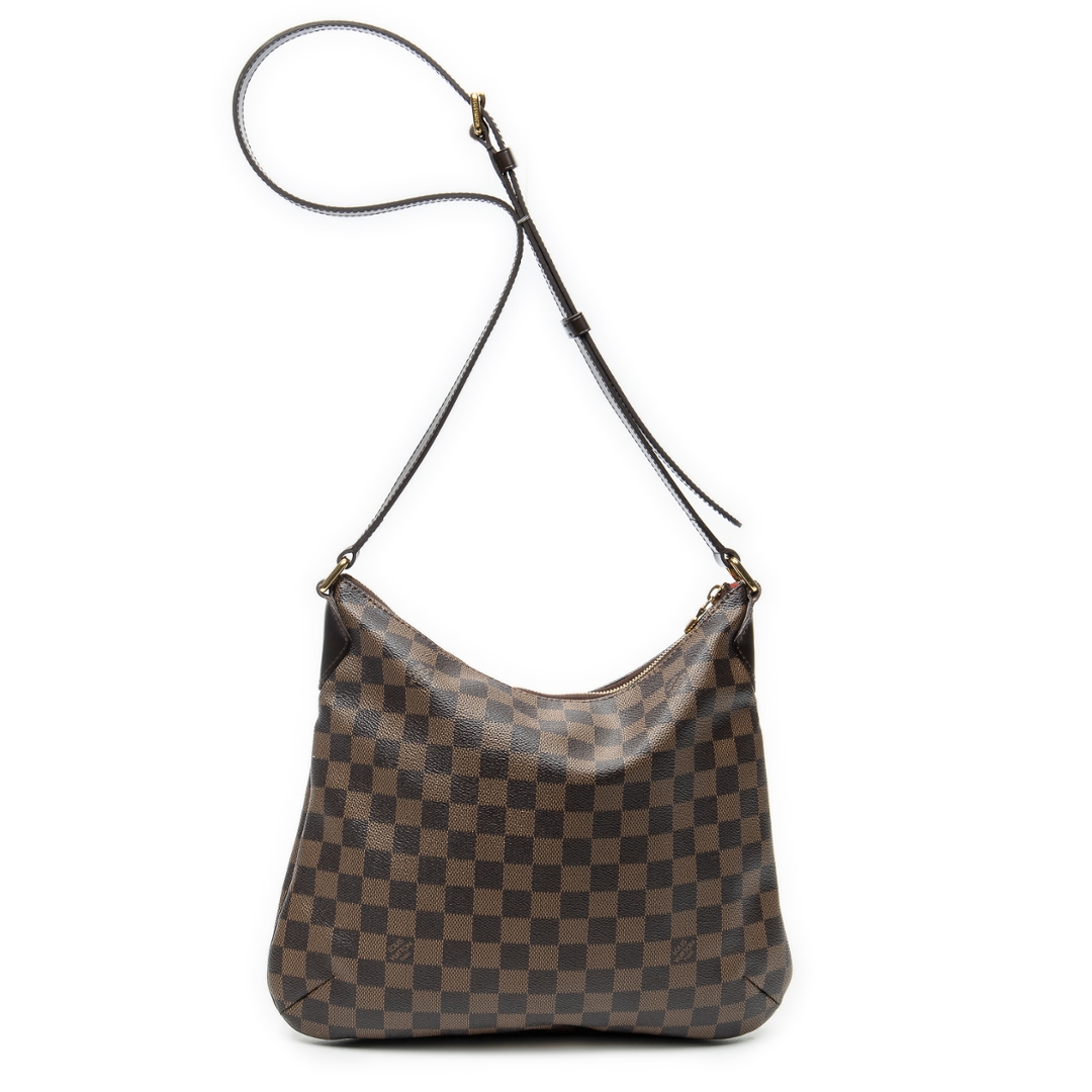 A vintage Louis Vuitton Bloomsbury bag crafted in the house’s signature brown Damier coated canvas, offering a relaxed yet refined silhouette designed for everyday wear. The softly curved shape is complemented by dark leather trim, an adjustable shoulder strap, and gold-tone hardware, with a secure zip-top closure enhancing practicality. Measuring approximately 28cm in height and 33cm in width, it provides a comfortable and well-proportioned size for daily essentials.