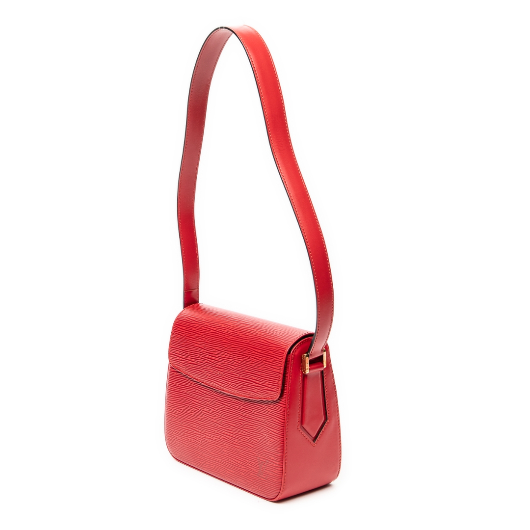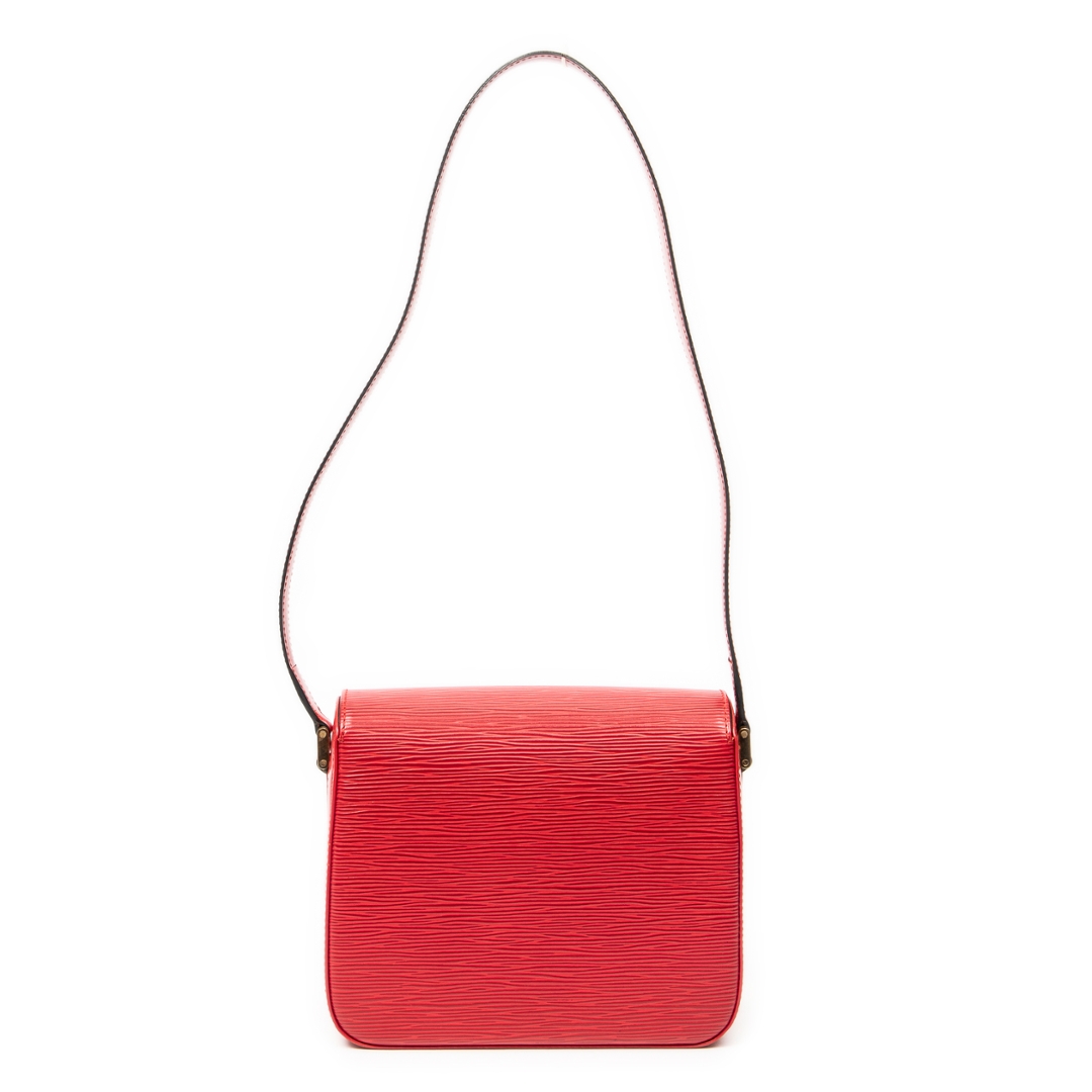 A vintage Louis Vuitton Red Calf Leather Buci bag with a certificate of authenticity. Approximately 16cm height, 20cm width.