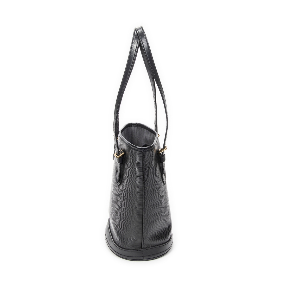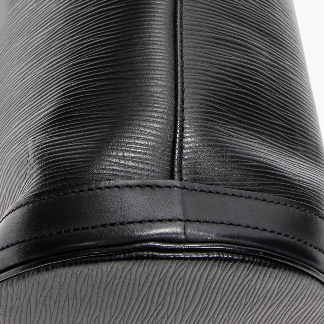 A vintage Louis Vuitton Black Calf Leather Bucket bag with a certificate of authenticity. Approximately 26cm height, 23cm width.