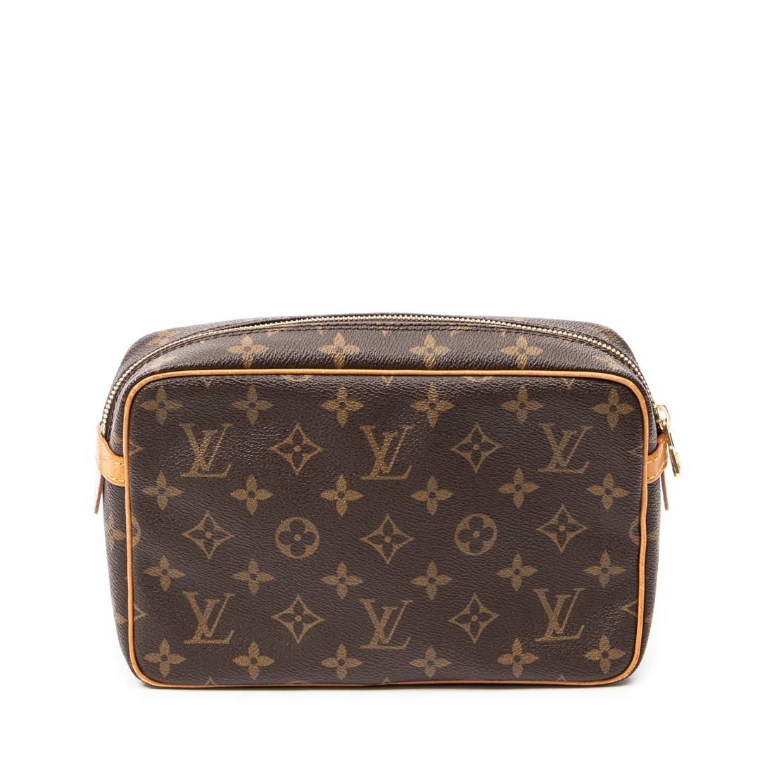 A vintage Louis Vuitton Compiegne bag crafted from the iconic brown coated canvas, featuring the timeless monogram pattern accented with natural leather trim. The compact, structured silhouette is both practical and refined, offering a clean and classic design that has remained popular across generations.