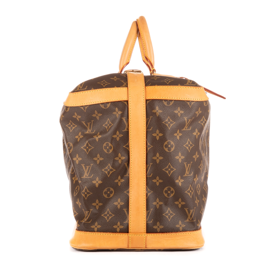 A vintage Louis Vuitton Cruiser bag crafted in the house’s iconic monogram coated canvas, presenting a classic travel-ready silhouette with unmistakable heritage appeal. Accented with natural leather trim, structured top handles, and signature gold-tone hardware, this piece reflects the brand’s legacy of durable craftsmanship and refined design.