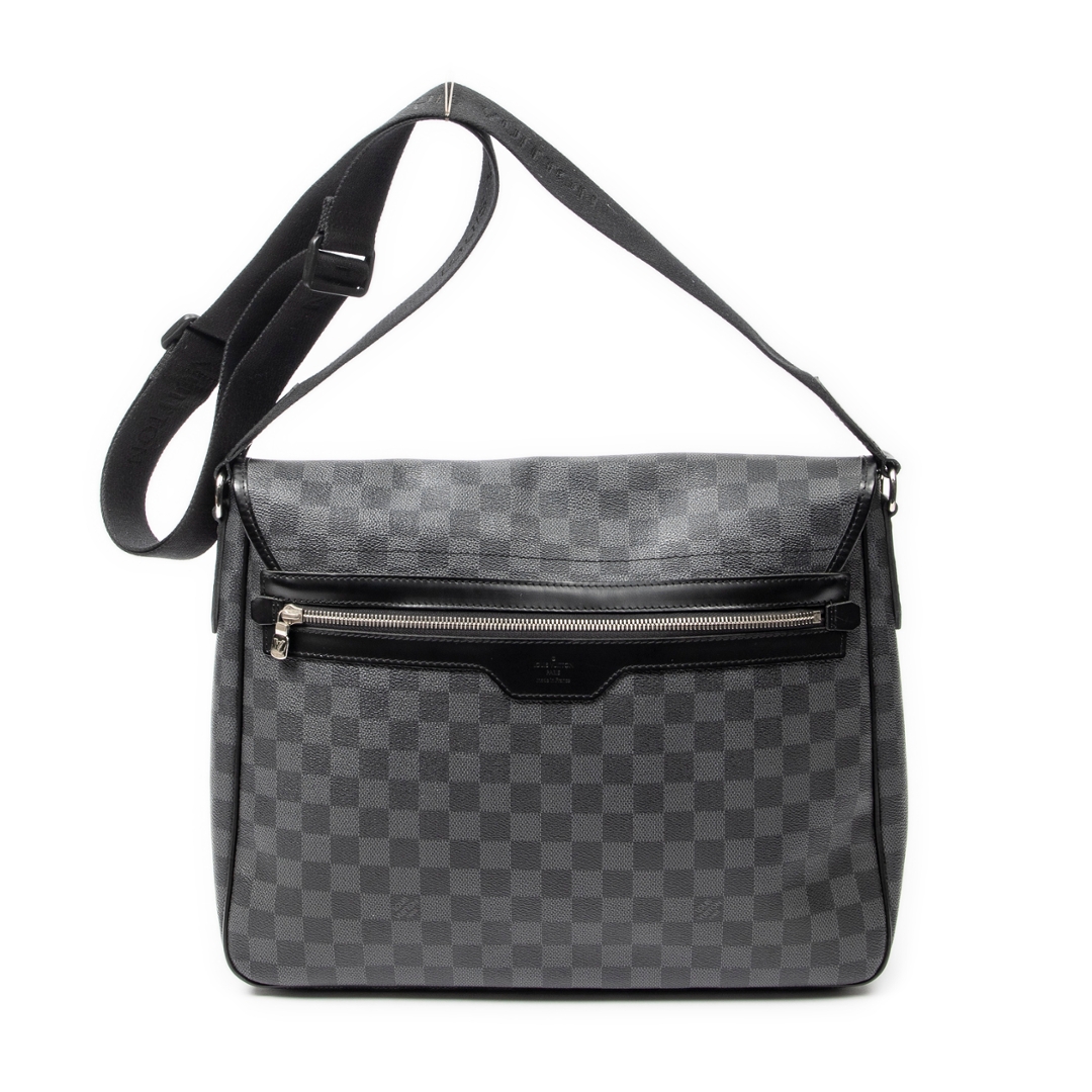 A vintage Louis Vuitton Daniel bag crafted from black and grey coated canvas in the signature Damier pattern, offering a sleek and contemporary take on classic Louis Vuitton design. The structured messenger silhouette is complemented by tonal leather trim and a wide adjustable strap, creating a refined yet practical everyday piece.