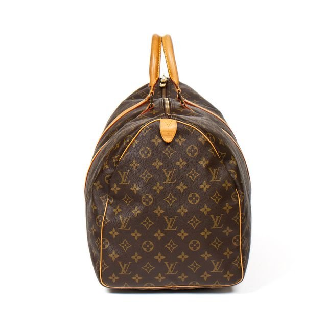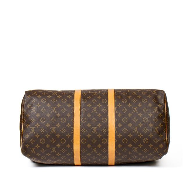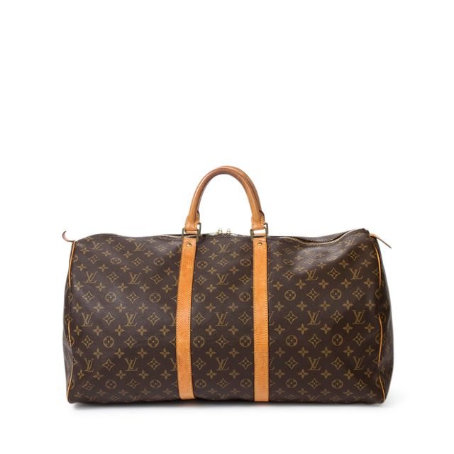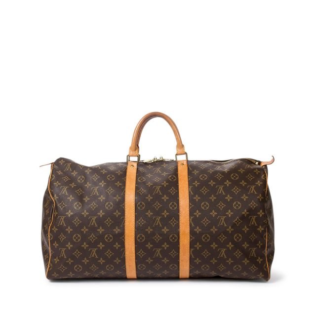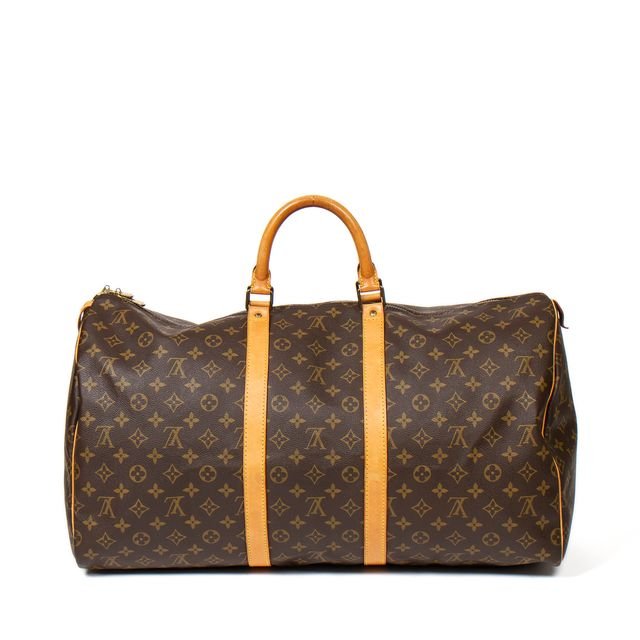 A vintage Louis Vuitton Brown Coated Canvas Keepall bag with a certificate of authenticity, Approx 28cm height, 55cm width.