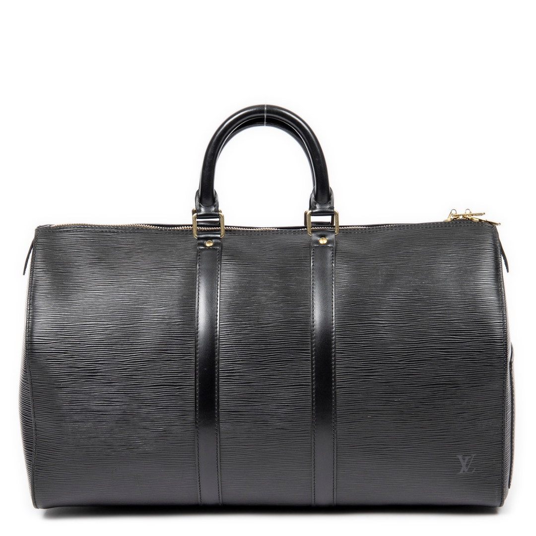 Complete with a certificate of authenticity, this black leather Keepall represents a timeless and highly sought-after Louis Vuitton travel piece with enduring appeal.
