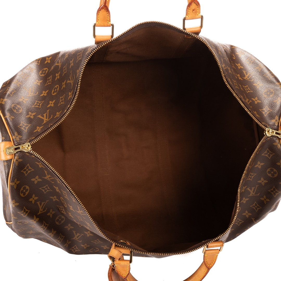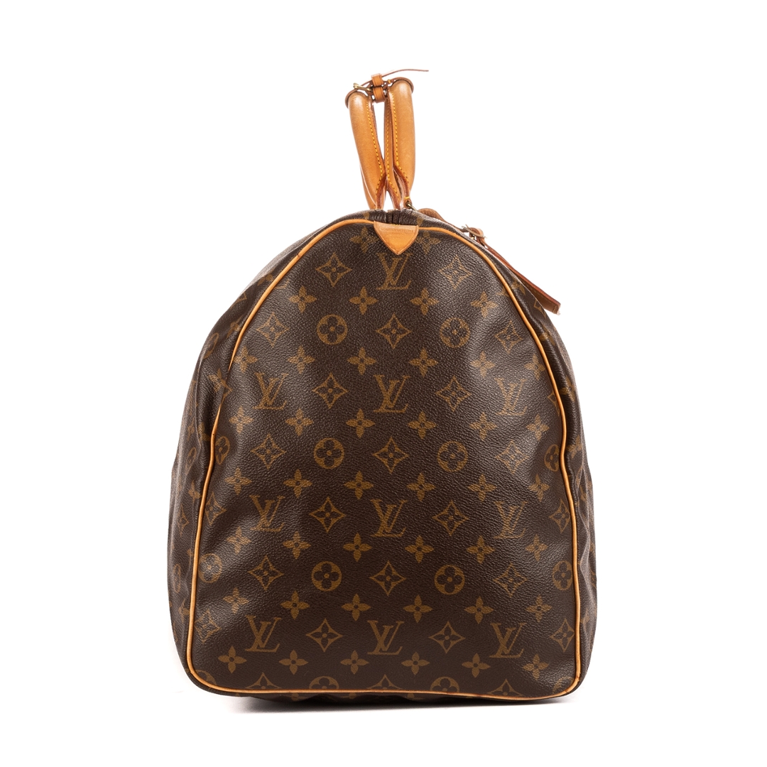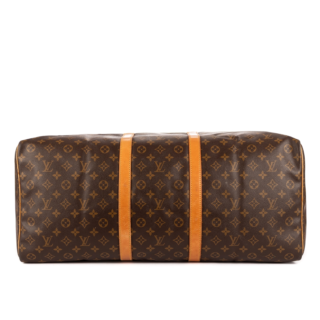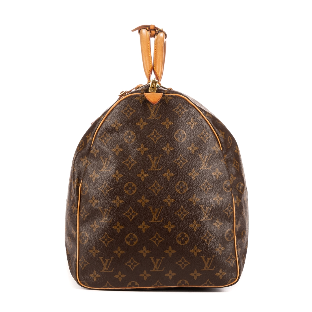 A vintage Louis Vuitton monogram coated canvas Keepall bag with a certificate of authenticity, Approximately 26cm height, 60cm width.