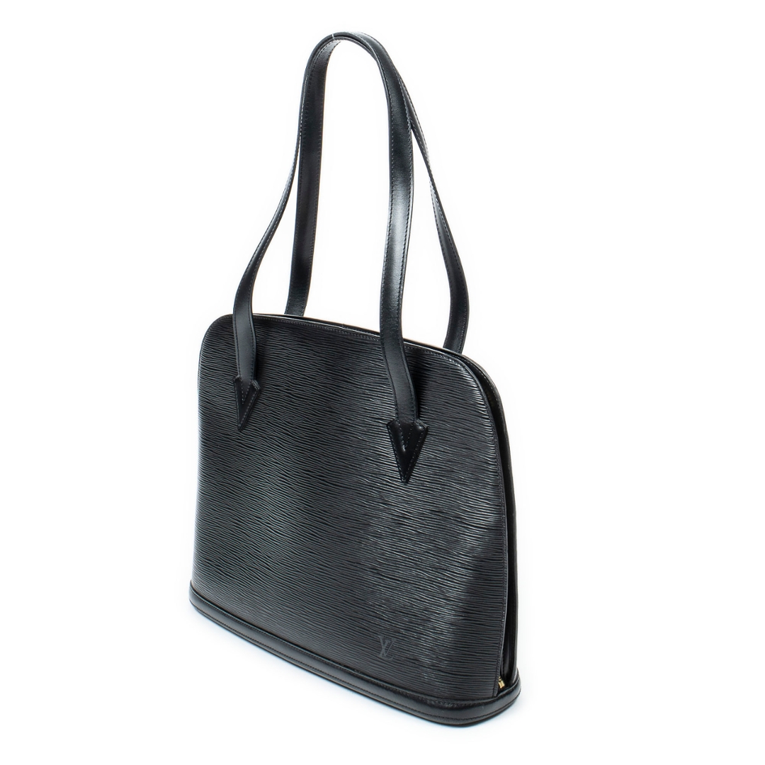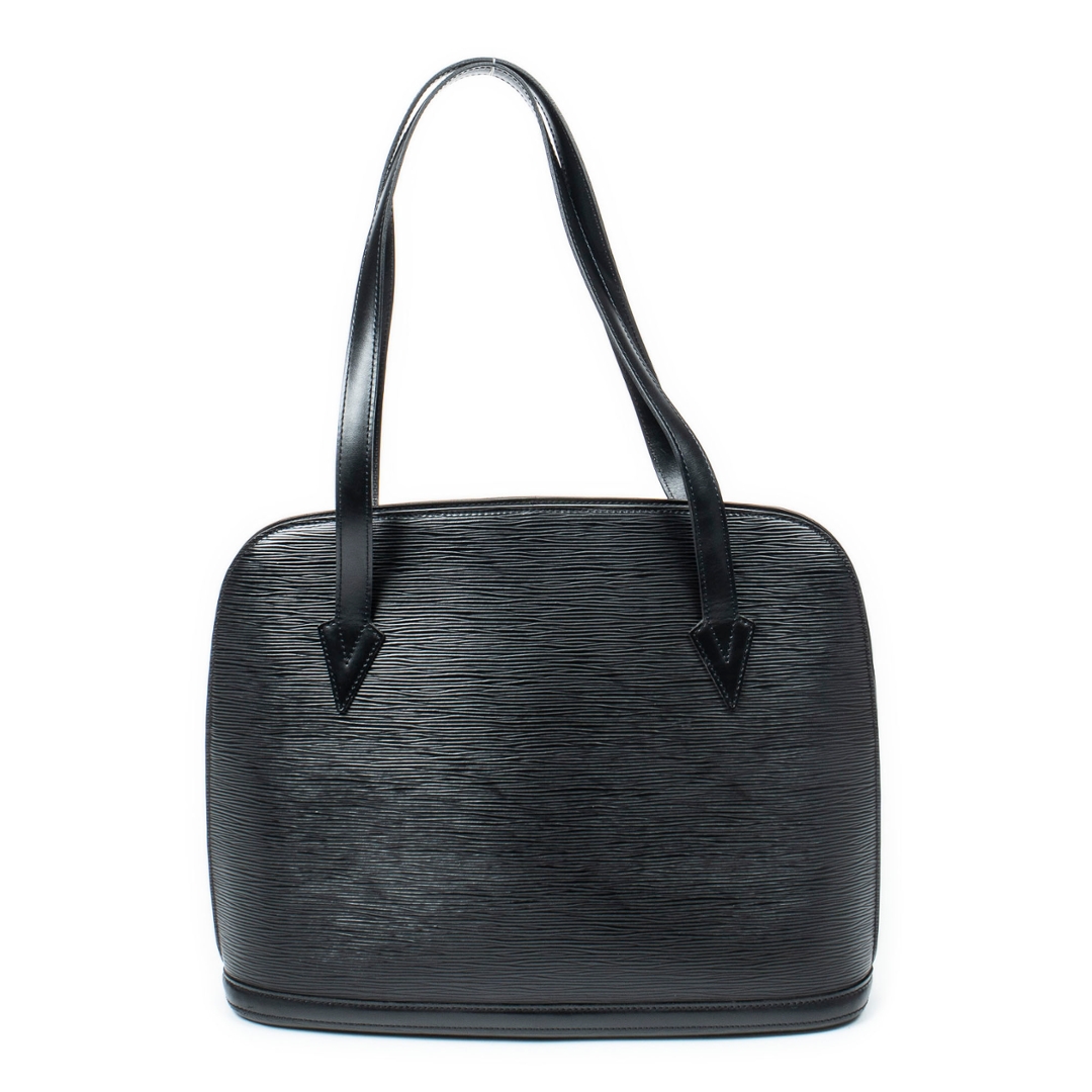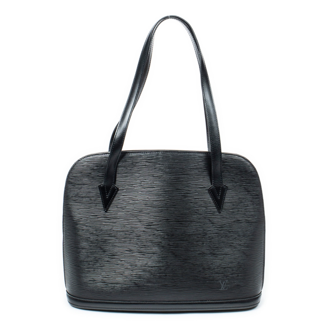 A vintage Louis Vuitton black calf leather Lussac bag with a certificate of authenticity. Approximately 38cm height, 30cm width.