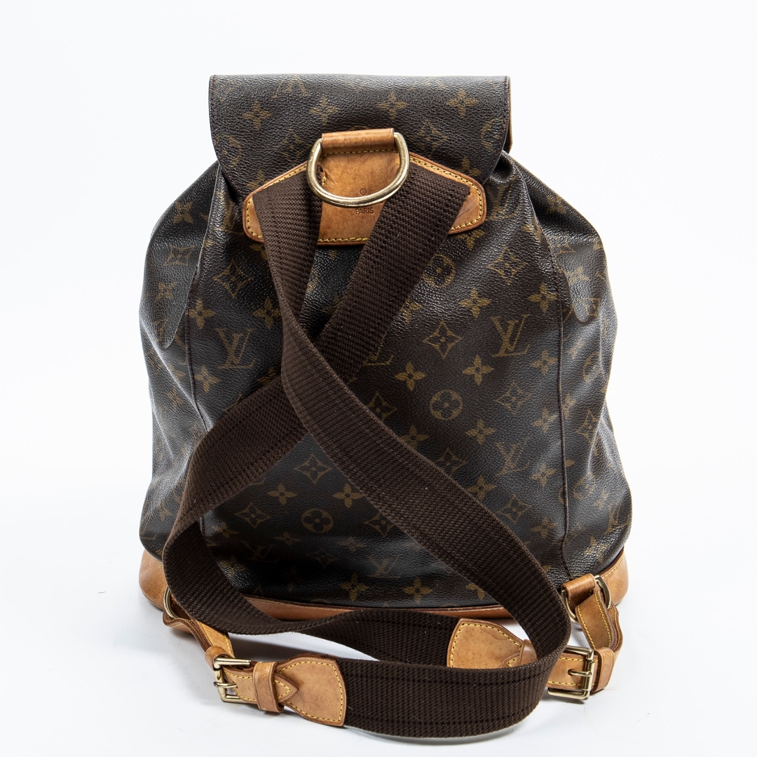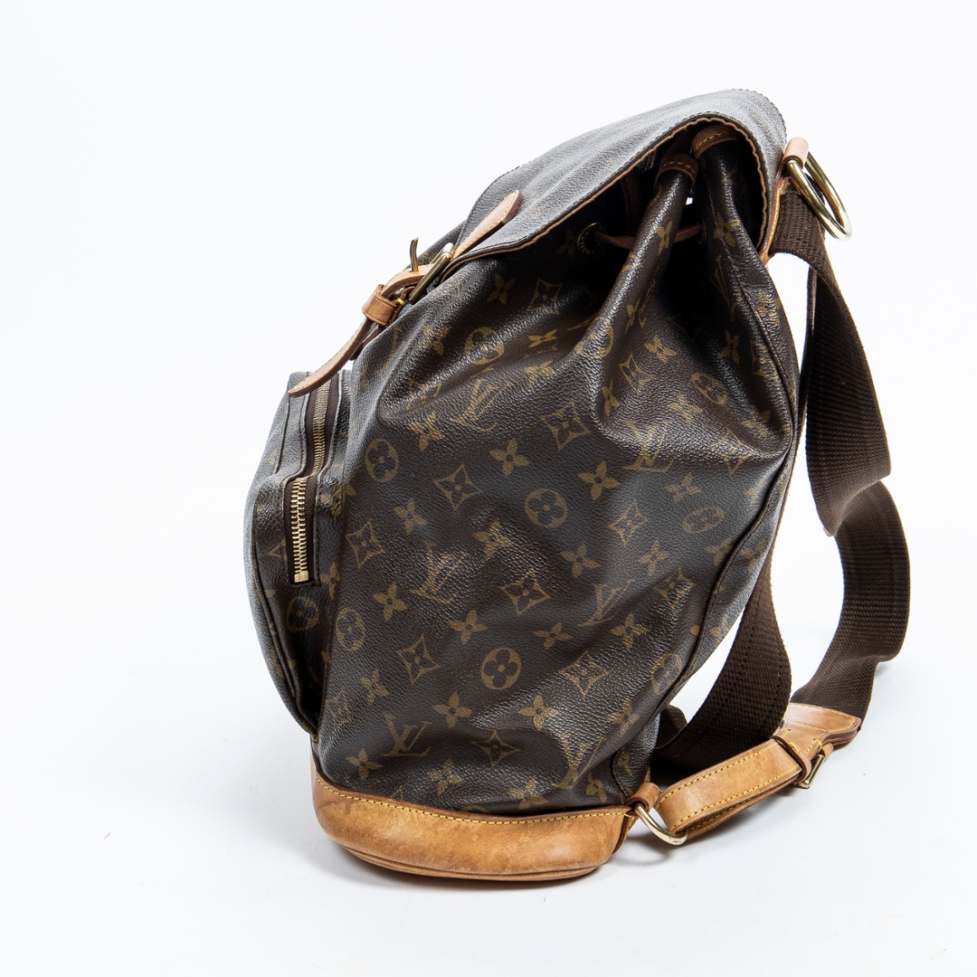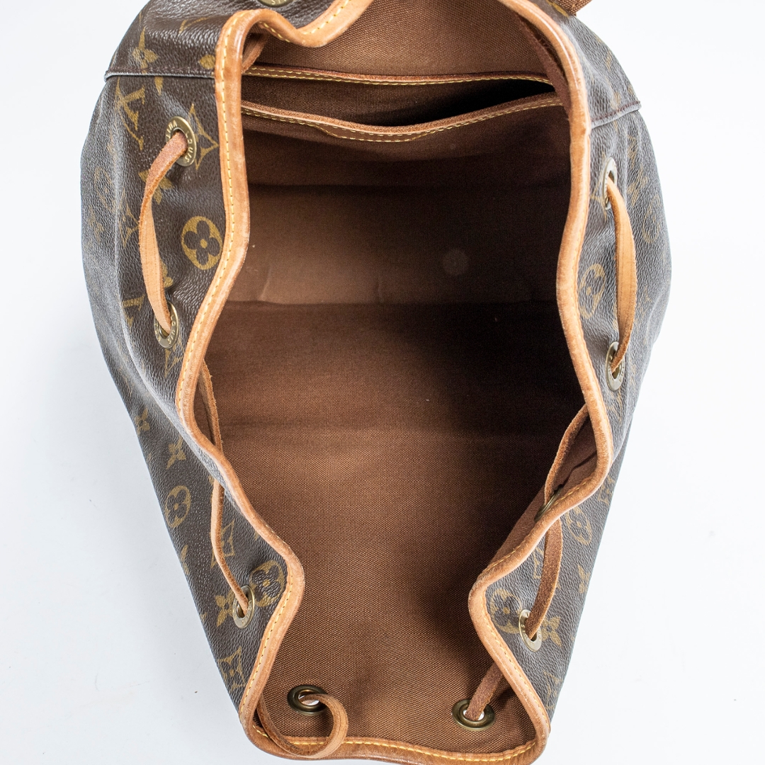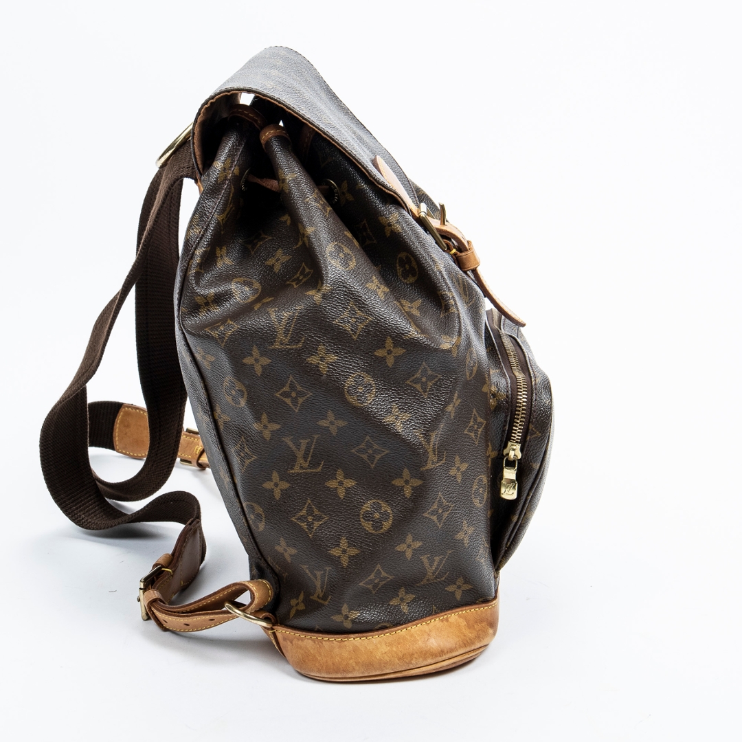 A vintage Louis Vuitton monogram coated canvas Montsouris bag with a certificate of authenticity, Approximately 35cm height, 20cm width.