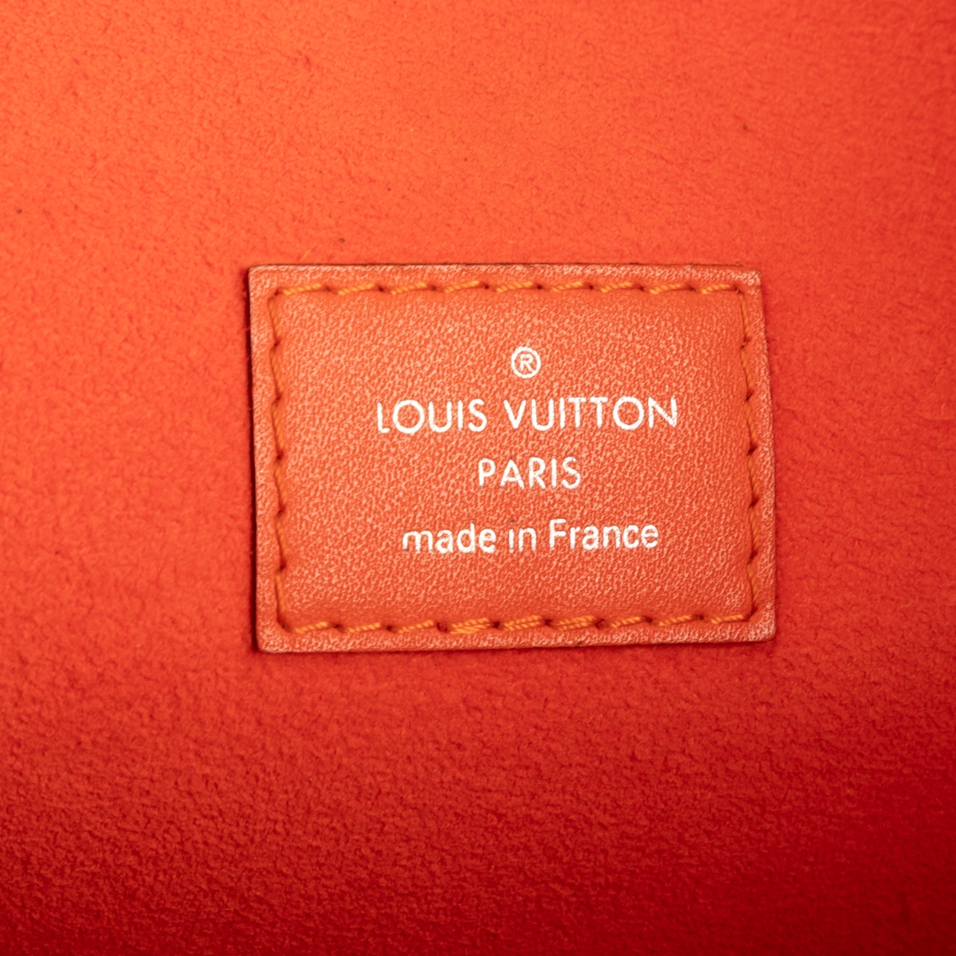 A vintage Louis Vuitton orange calf leather Neverfull bag with a certificate of authenticity. Approximately 22cm height, 29cm width.
