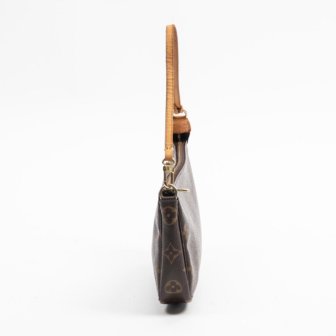 A vintage Louis Vuitton Pochette Accessoires bag crafted in the house’s iconic monogram coated canvas, finished with natural leather trim and gold-tone hardware. This compact and highly recognisable design embodies effortless Parisian styling, making it a staple piece within the Louis Vuitton collection.