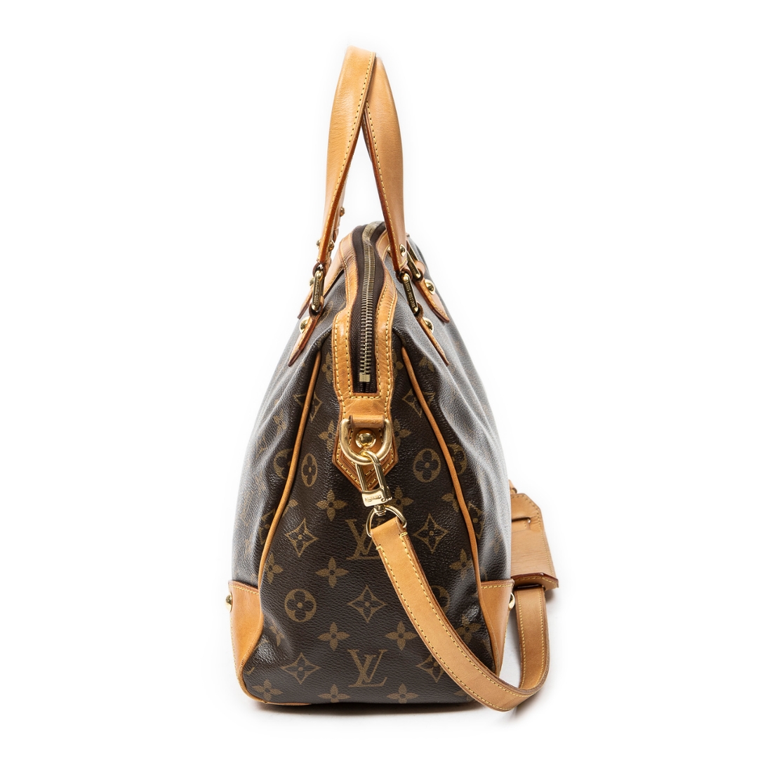 A vintage Louis Vuitton Retiro bag crafted in the house’s iconic monogram coated canvas, complemented by natural leather trim and gold-tone hardware. This structured yet softly contoured design offers a refined everyday silhouette, blending classic Louis Vuitton styling with practical functionality.