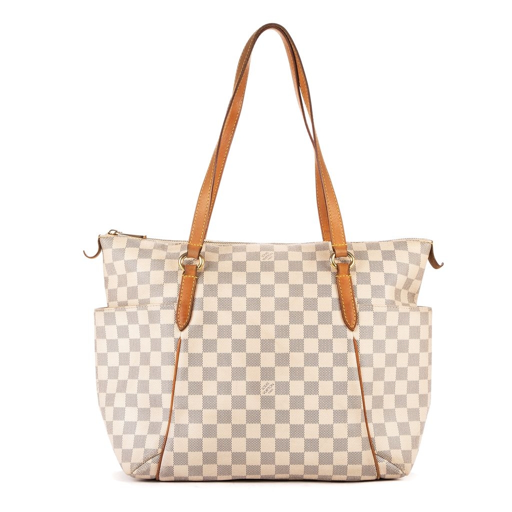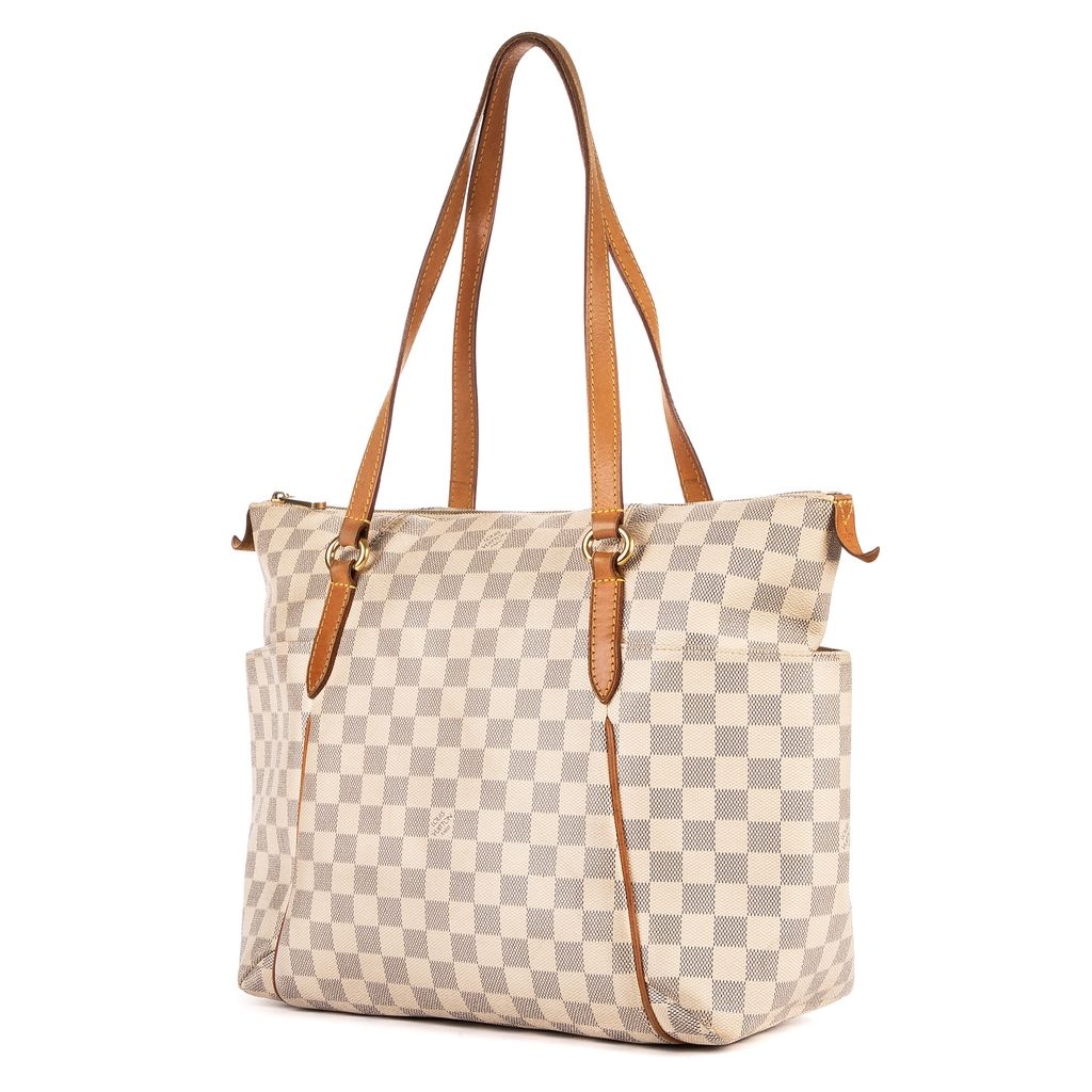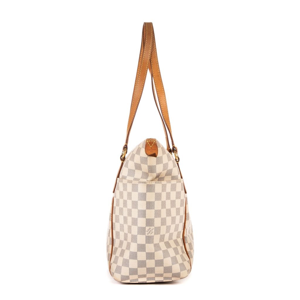 Louis Vuitton Totally bag is a beloved classic, blending refined craftsmanship with effortless practicality. Crafted from the signature Damier Azur-coated canvas, its light ivory-and-beige checkerboard pattern radiates timeless sophistication. The supple cowhide leather trim and comfortable double shoulder straps develop a rich patina over time, adding to its vintage charm and authenticity.