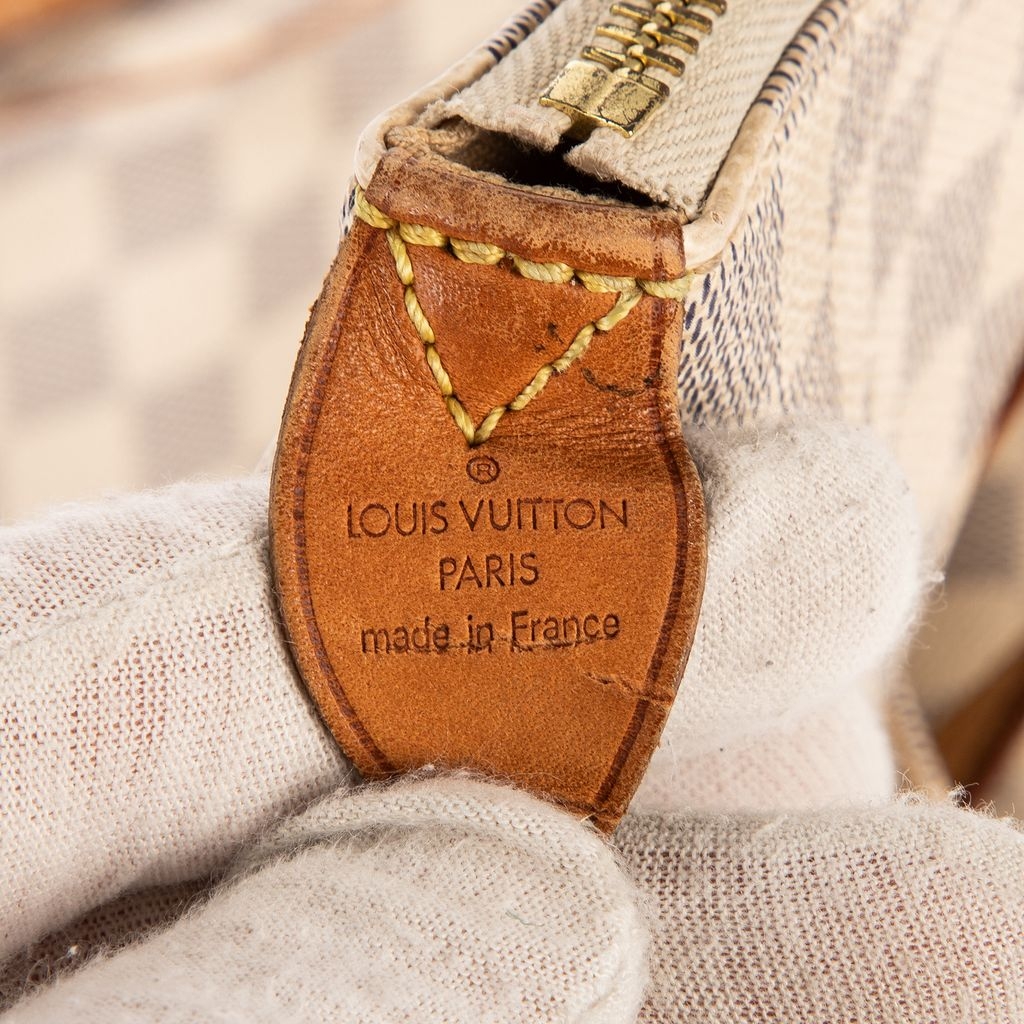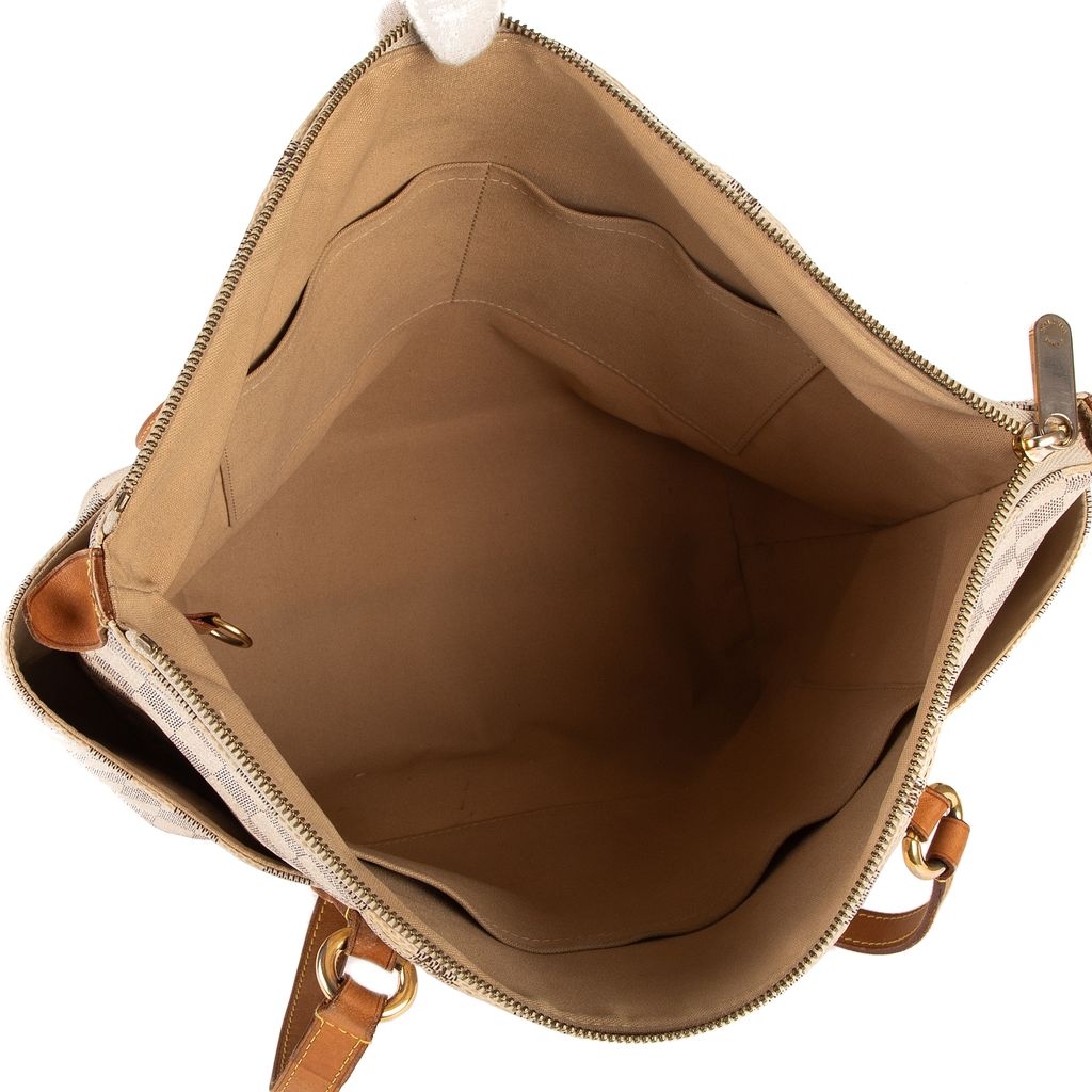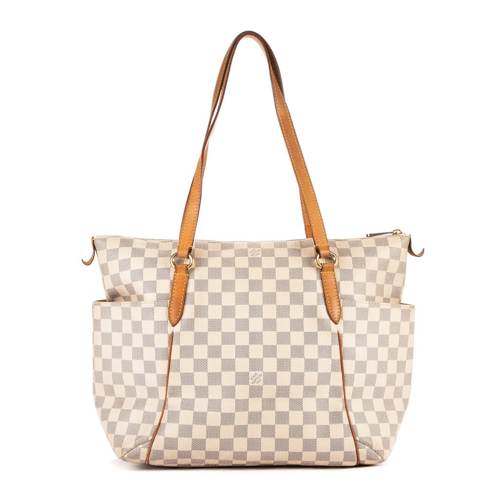 Louis Vuitton Totally bag is a beloved classic, blending refined craftsmanship with effortless practicality. Crafted from the signature Damier Azur-coated canvas, its light ivory-and-beige checkerboard pattern radiates timeless sophistication. The supple cowhide leather trim and comfortable double shoulder straps develop a rich patina over time, adding to its vintage charm and authenticity.