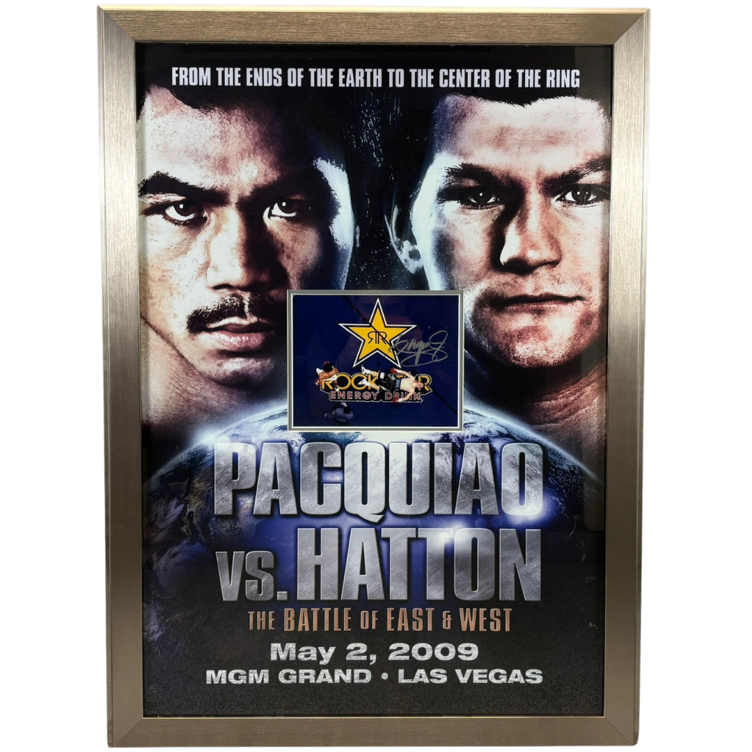 A signed and authenticated Manny Pacquiao “Pacquiao v Hatton” fight poster is a must-have for boxing fans and collectors of sporting history. Commemorating the legendary clash between Manny Pacquiao and Ricky Hatton on May 2, 2009, at the MGM Grand in Las Vegas, the poster captures the intensity and global anticipation of “The Battle of East & West.”