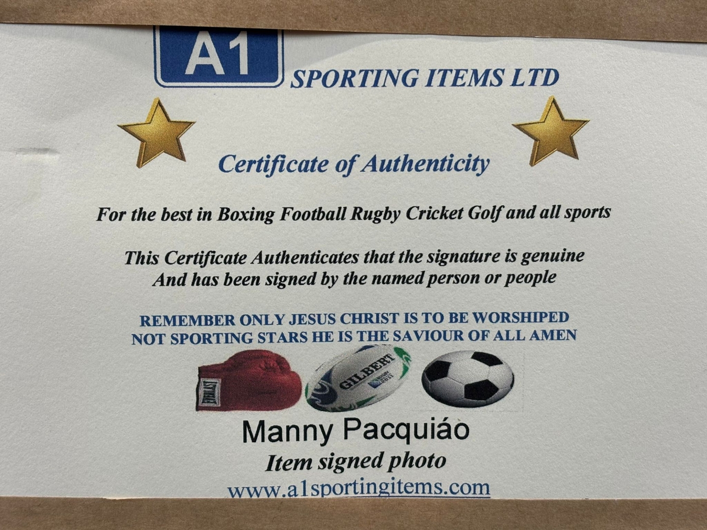 Complete with full authentication, this framed collectable offers peace of mind for enthusiasts and investors alike. Perfect for display in a home, office, or dedicated sports collection, it pays tribute to one of boxing’s most memorable nights, celebrating Pacquiao’s dominance and his place among the sport’s true greats.