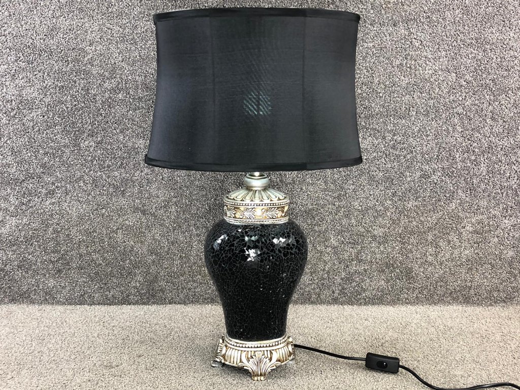 - > Medium Black Crushed Mosaic Glass Lamp