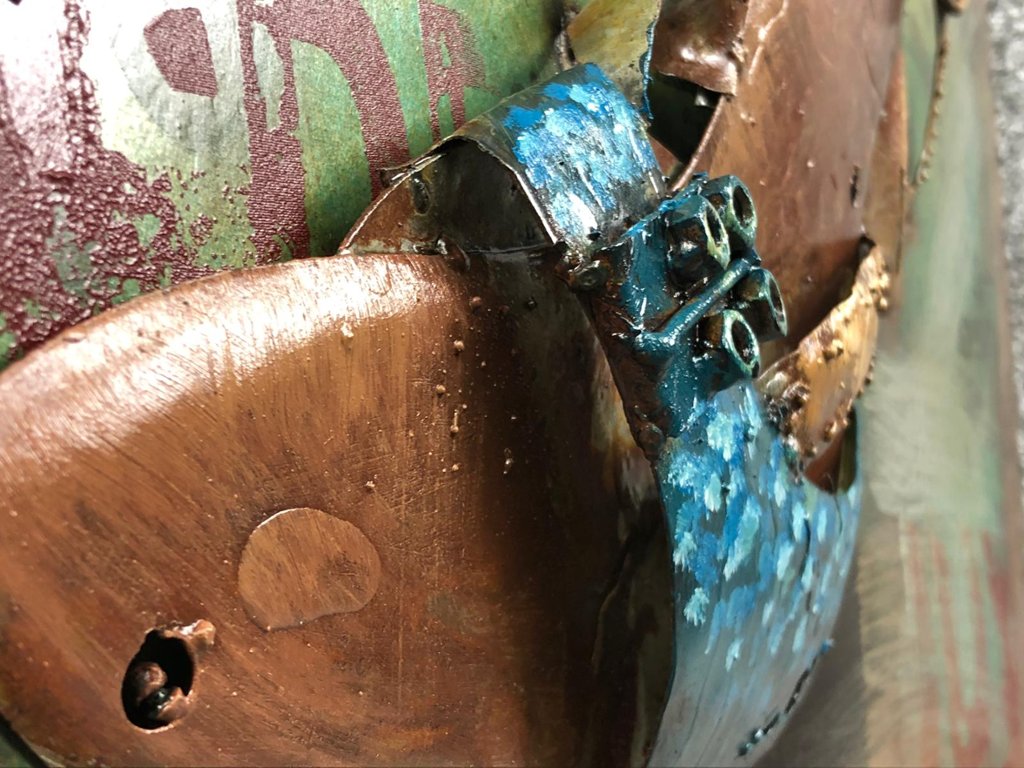 A contemporary modern 3D metal art picture of a Ladies Shoe. Approx 24" height, 24" width.
