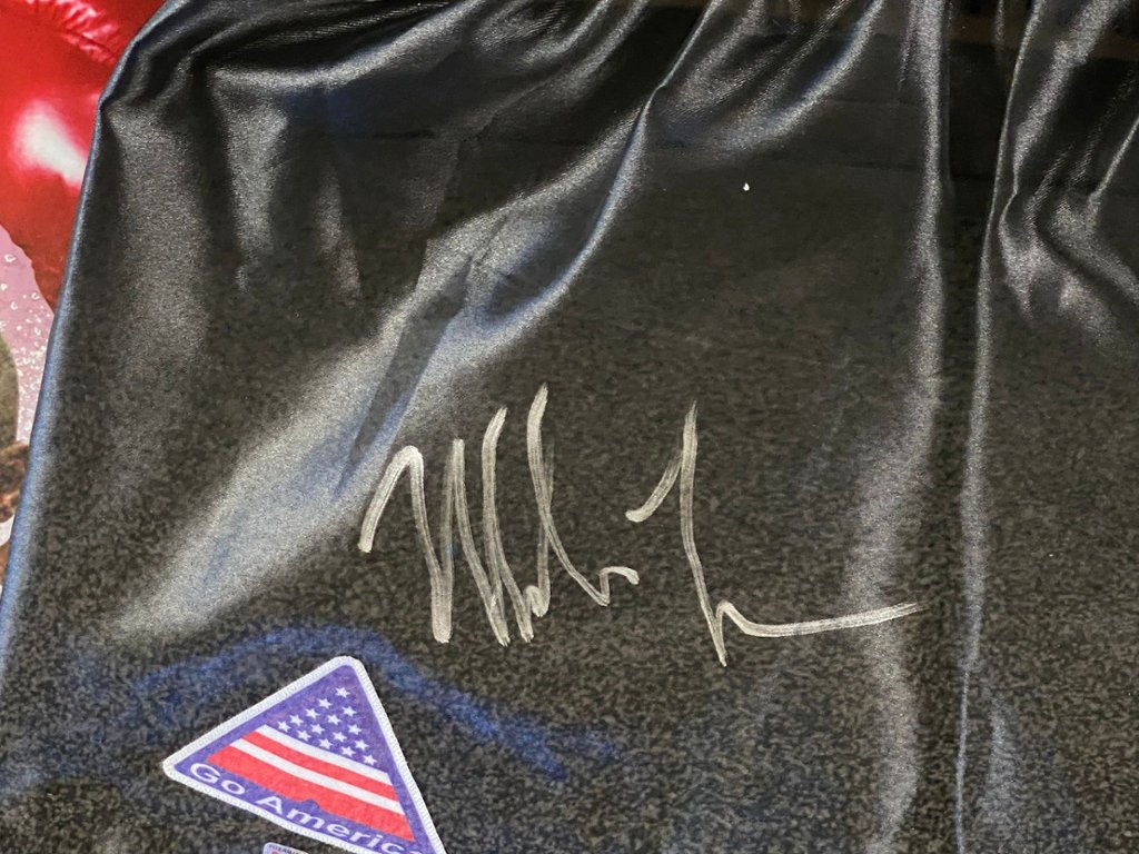Adorned with the signature of the legendary heavyweight champion Mike Tyson, these black boxing shorts embody the ferocity and skill that made Tyson a formidable force in the ring. Authenticated for absolute assurance, they serve as a tangible link to Tyson's unparalleled career.