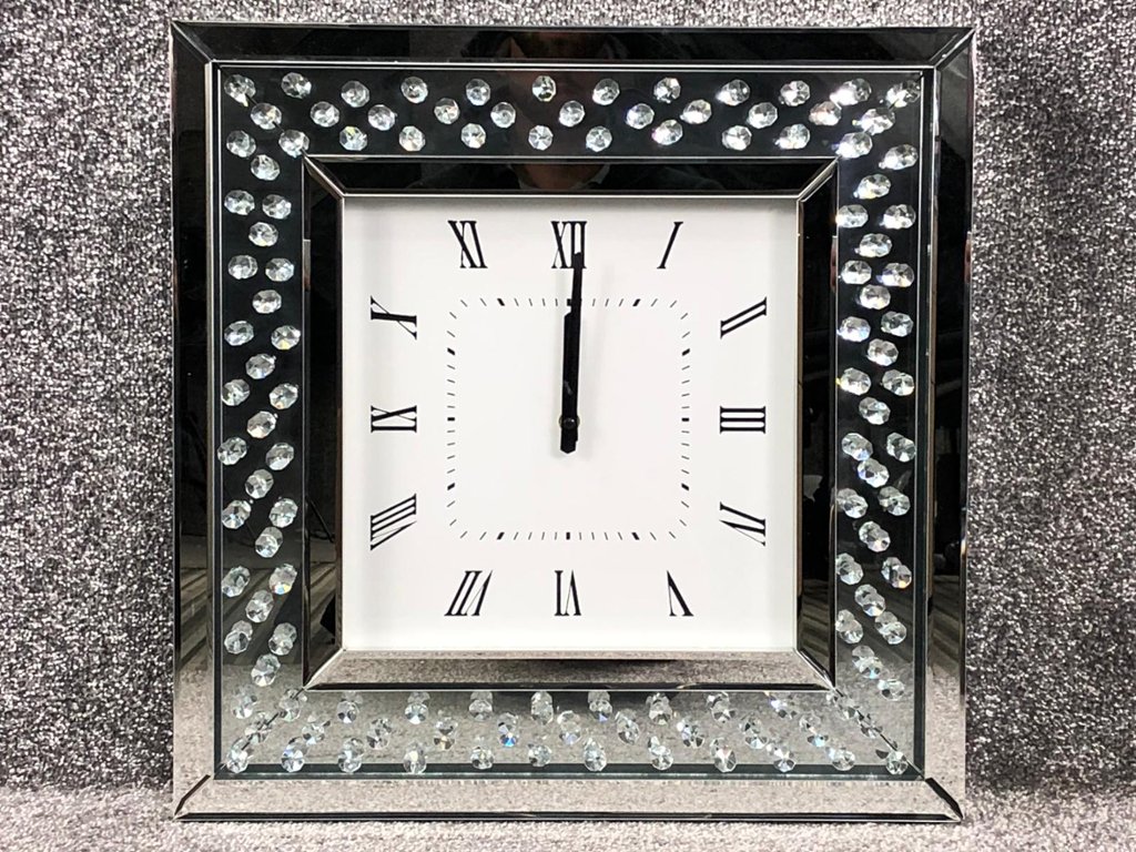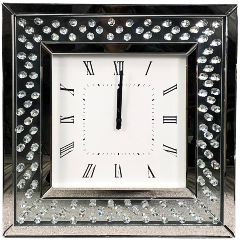 Elevate your home decor with the Bevelled Edge Mirror and Floating Crystal Effect Wall Clock. With its stunning design and captivating allure, it's sure to become a focal point in your interior design scheme, adding a touch of glamour and luxury to your living space.