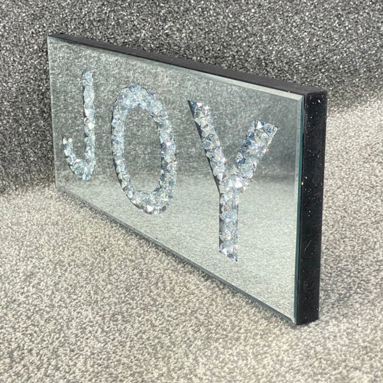Whether displayed on a wall in your living room, bedroom, or entryway, this 'Joy' sign serves as a stylish and uplifting accent piece that enhances the ambience of any space. Its reflective surface adds depth and brightness to the room, while the message it conveys serves as a reminder to embrace joy and positivity in everyday life.