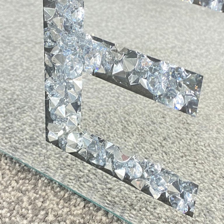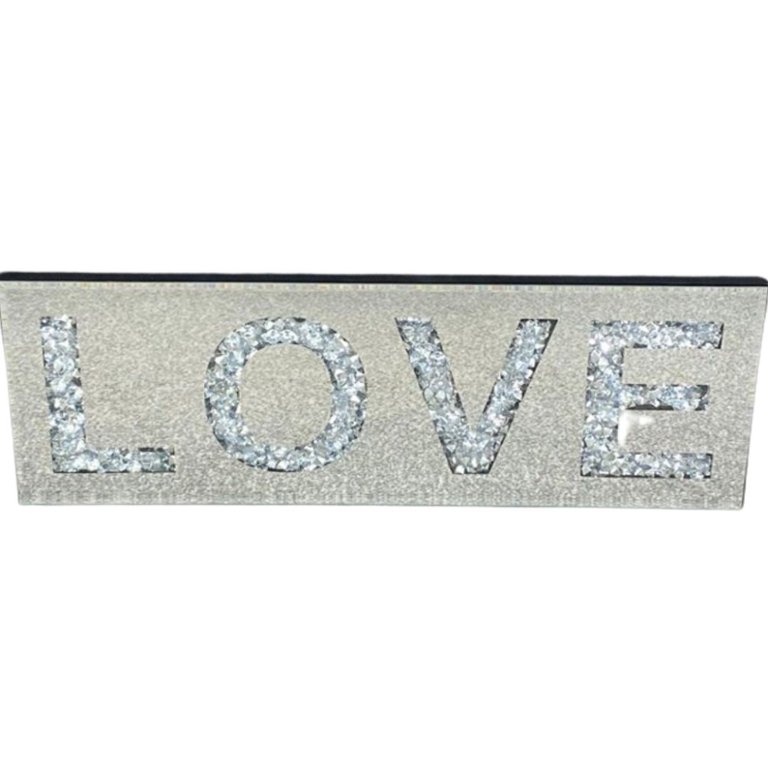 Elevate the ambience of your space with this stunning bevelled edge mirrored and trapped diamante 'Love' sign. Measuring approximately 8 inches in height and 24 inches in width, this sign exudes elegance and charm while conveying a message of love and affection.