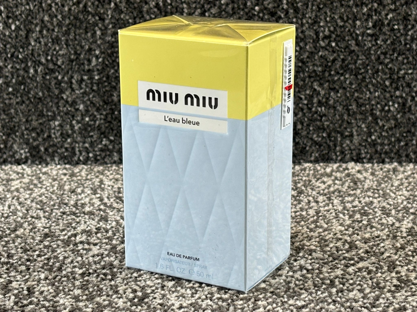 A 50ml bottle of Miu Miu L’Eau Bleue Eau De Parfum, presented in its original presentation box and offering a distinctive, contemporary fragrance from the Miu Miu collection. This refined scent reflects the brand’s modern, fashion-forward identity, combining elegance with a confident and unconventional character.