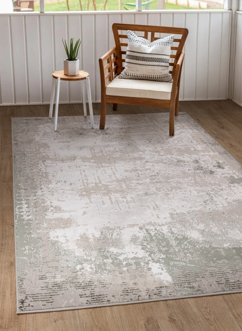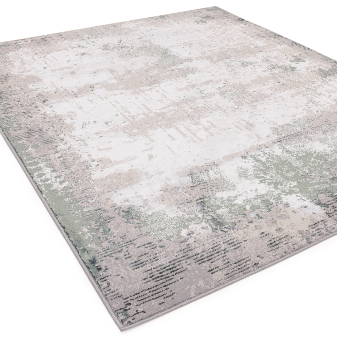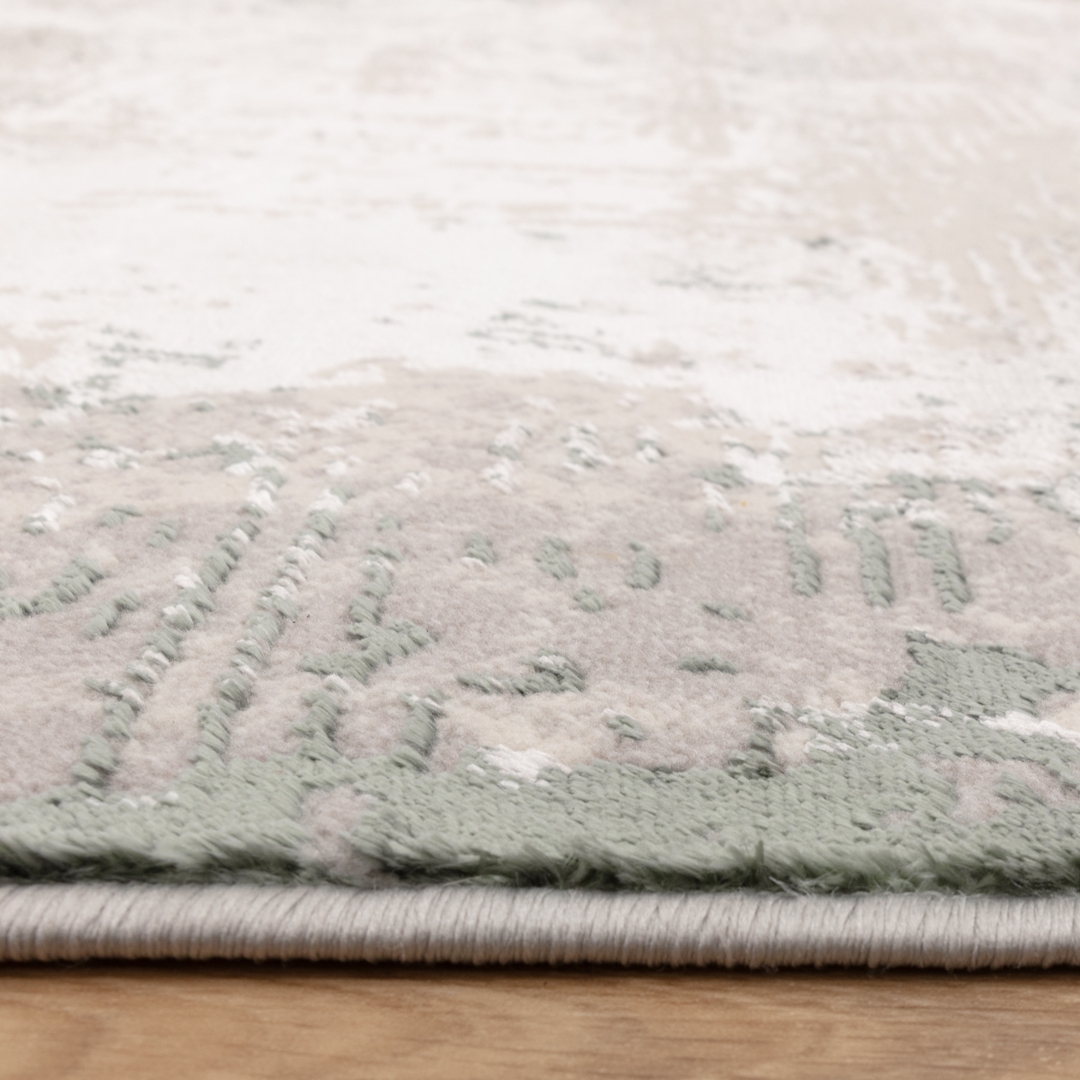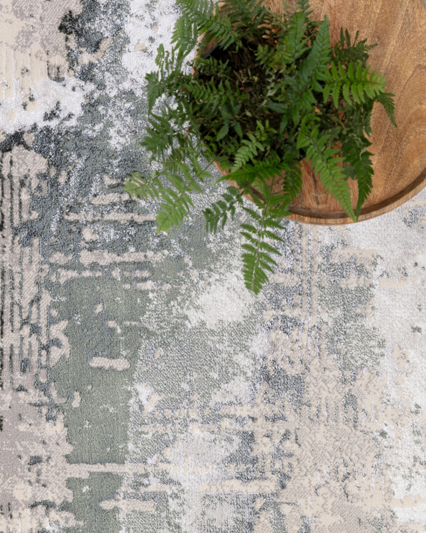 A modern green and grey distressed effect carpet boasting a captivating silk effect sheen. With dimensions of approximately 200cm by 290cm, it exudes elegance and sophistication, becoming a focal point in any room. The lustrous sheen adds a touch of opulence, while the modern design complements contemporary decor effortlessly. Whether gracing your living room, bedroom, or dining area, its plush texture and exquisite craftsmanship promise to enhance your home's ambience. Immerse yourself in the sumptuous comfort and timeless allure of this modern carpet, where style meets functionality in perfect harmony.