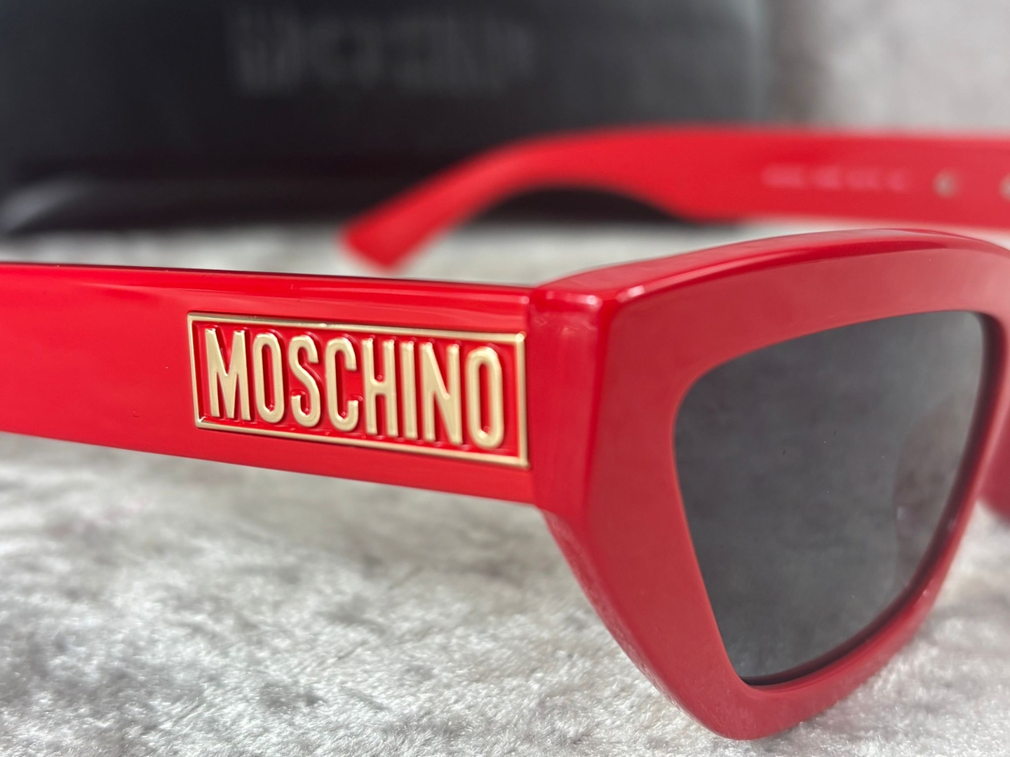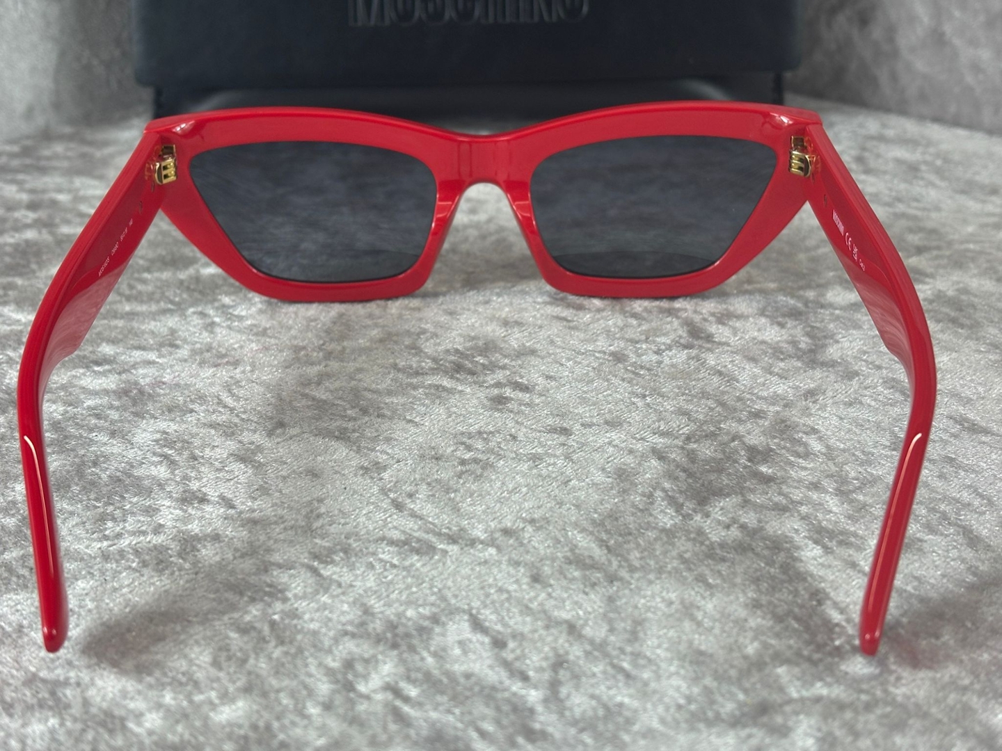 A Brand new, unused pair of Moschino Cat Eye - Red Sunglasses.