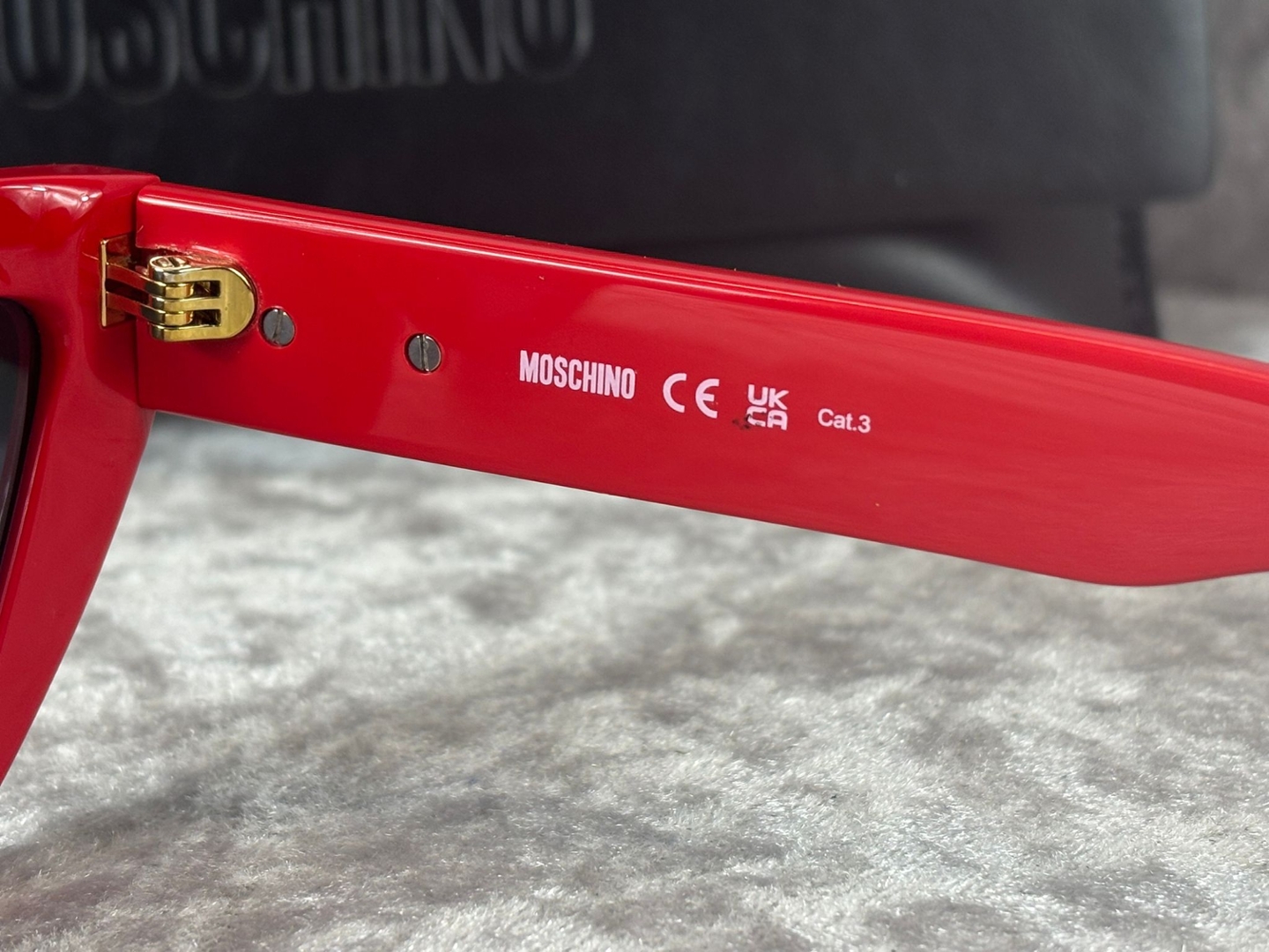 A brand new, unused pair of Moschino Cat Eye – Red Sunglasses, designed to deliver bold impact with unmistakable designer flair. The vibrant red frame instantly commands attention, while the classic cat-eye silhouette creates a flattering, feminine profile that lifts and defines the face. Paired with dark tinted lenses, the contrast enhances the striking colour and ensures a confident, fashion-forward finish.