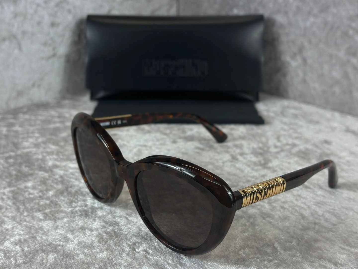 Supplied brand new and unused, complete with Moschino case, this pair represents a stylish and versatile addition to any collection. A striking designer accessory that balances vintage-inspired charm with contemporary appeal, perfect for fashion lovers seeking standout luxury.