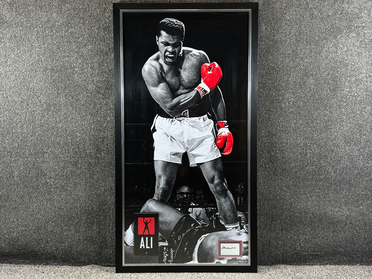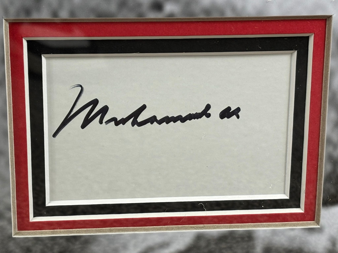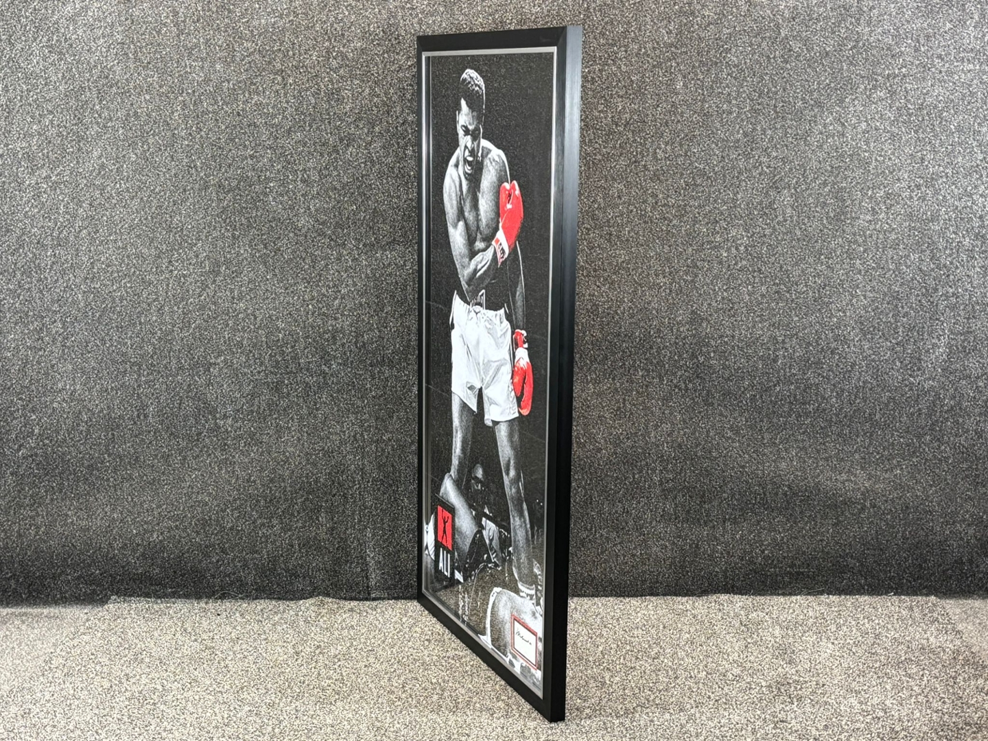 A signed and authenticated Muhammad Ali Boxing Picture in a presentation frame. Approx 129cm height, 69cm width.