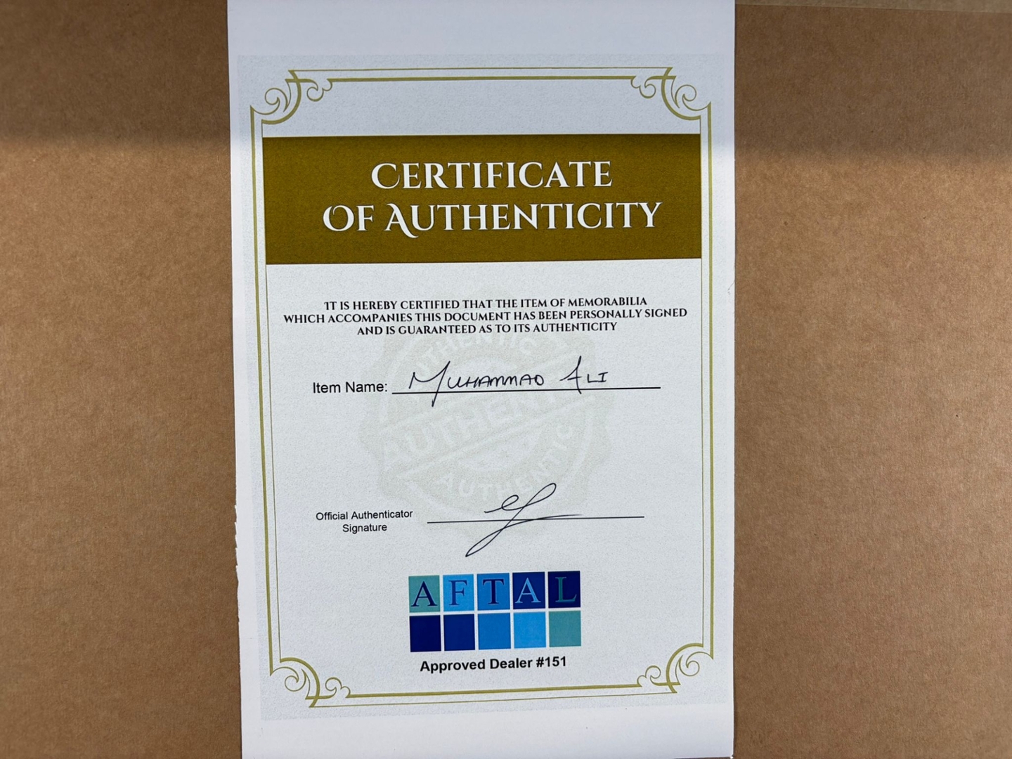 Fully authenticated, this framed Muhammad Ali picture is a must-have for collectors of boxing memorabilia and admirers of sporting greatness. A true celebration of Ali’s enduring legacy, it is perfect for display in a home, office, or dedicated collection.