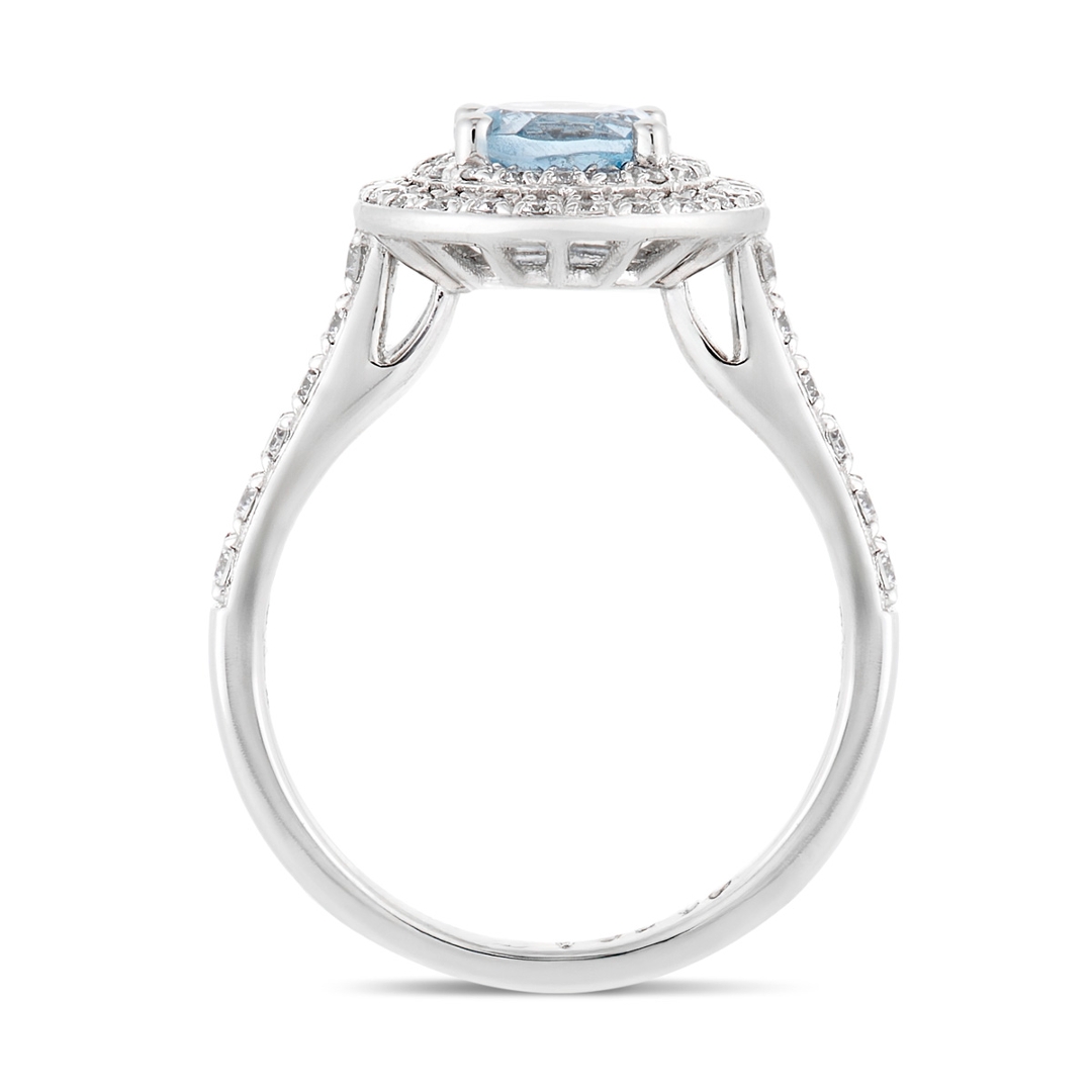 Professionally valued at £4,925, this ring is a dazzling statement of sophistication—perfect for a special gift, a meaningful milestone, or a distinctive engagement. Weighing 5.62 grams. The round silhouette, enhanced by the double halo, gives this piece a timeless yet modern appeal. Elegant, luminous, and meticulously crafted, this aquamarine and diamond cluster ring is designed to be worn with pride and treasured for a lifetime.
