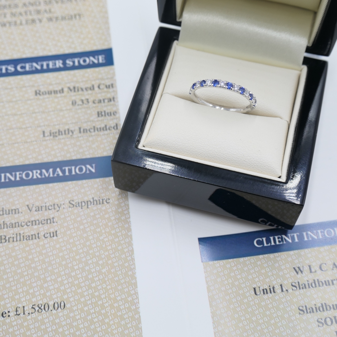 - > Natural Blue Sapphire 0.33ct & Diamond 0.21ct Eternity Ring