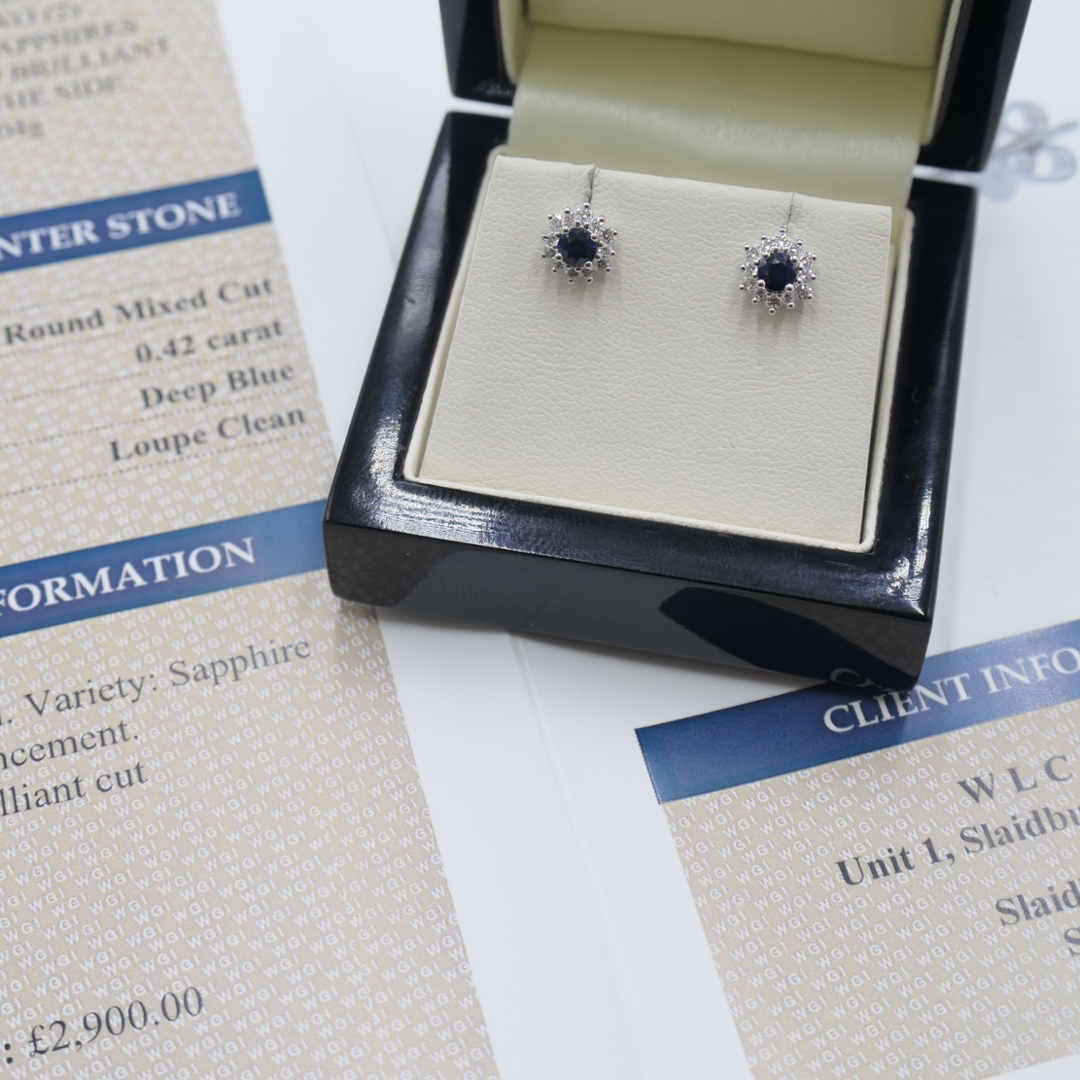 Professionally valued at £2,900.00, these earrings are an exceptional addition to any fine jewellery collection—ideal as a thoughtful gift or a personal indulgence. Designed to be worn, admired, and treasured, these sapphire and diamond cluster earrings embody timeless charm and impeccable craftsmanship, bringing grace and glamour to every moment.