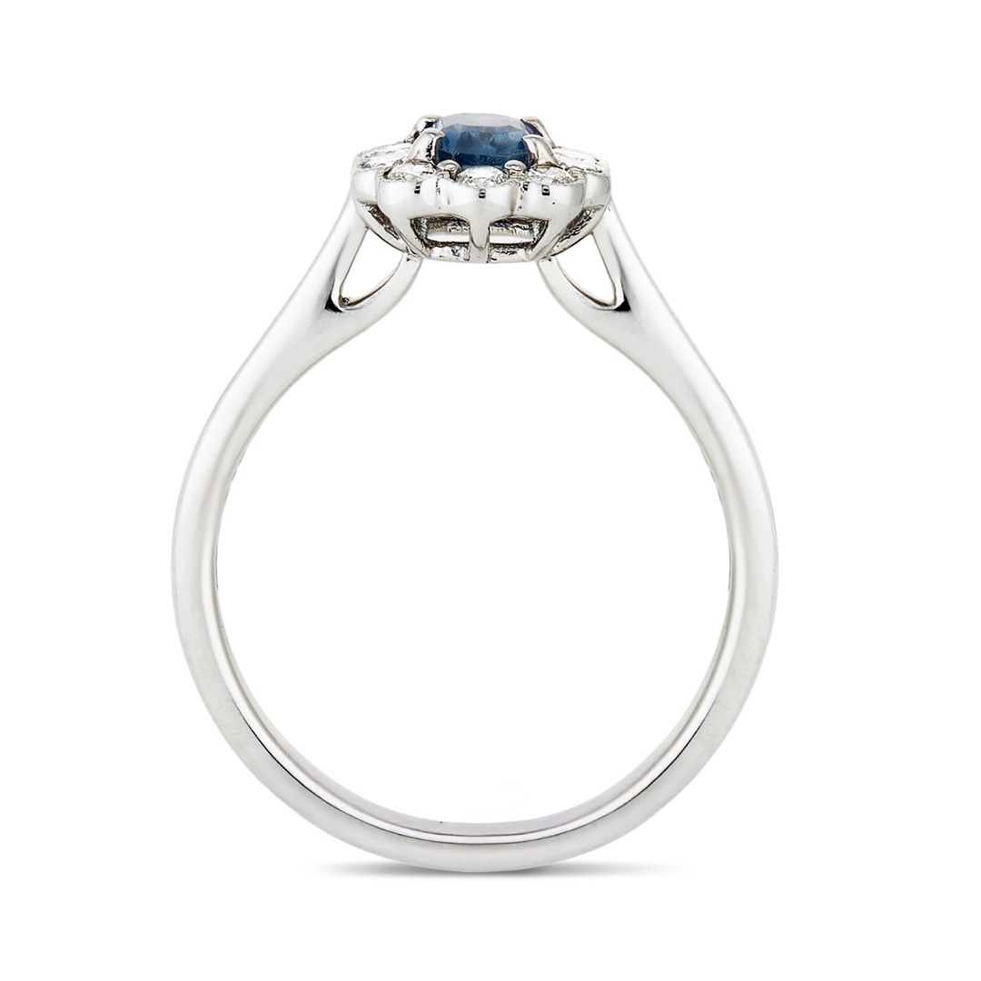 - > Natural Blue Sapphire 0.61ct & Diamond 0.32ct Flower Shaped Cluster Ring