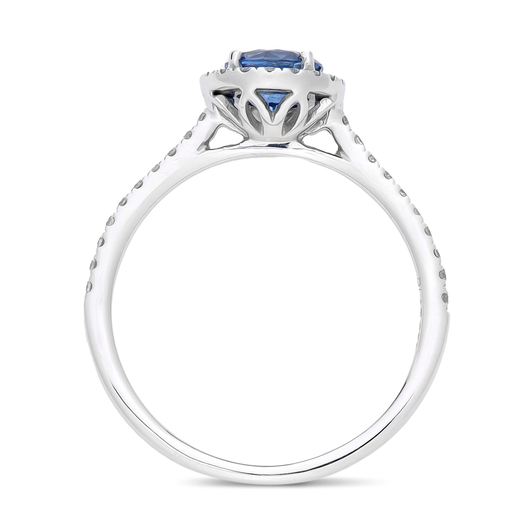 - > Natural Blue Sapphire 0.87ct & Diamond 0.26ct Round Shaped Cluster Ring
