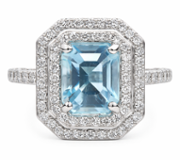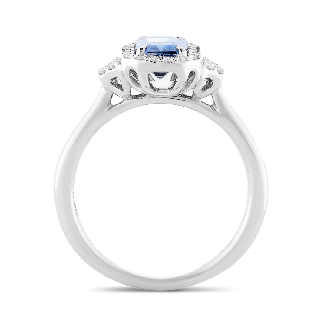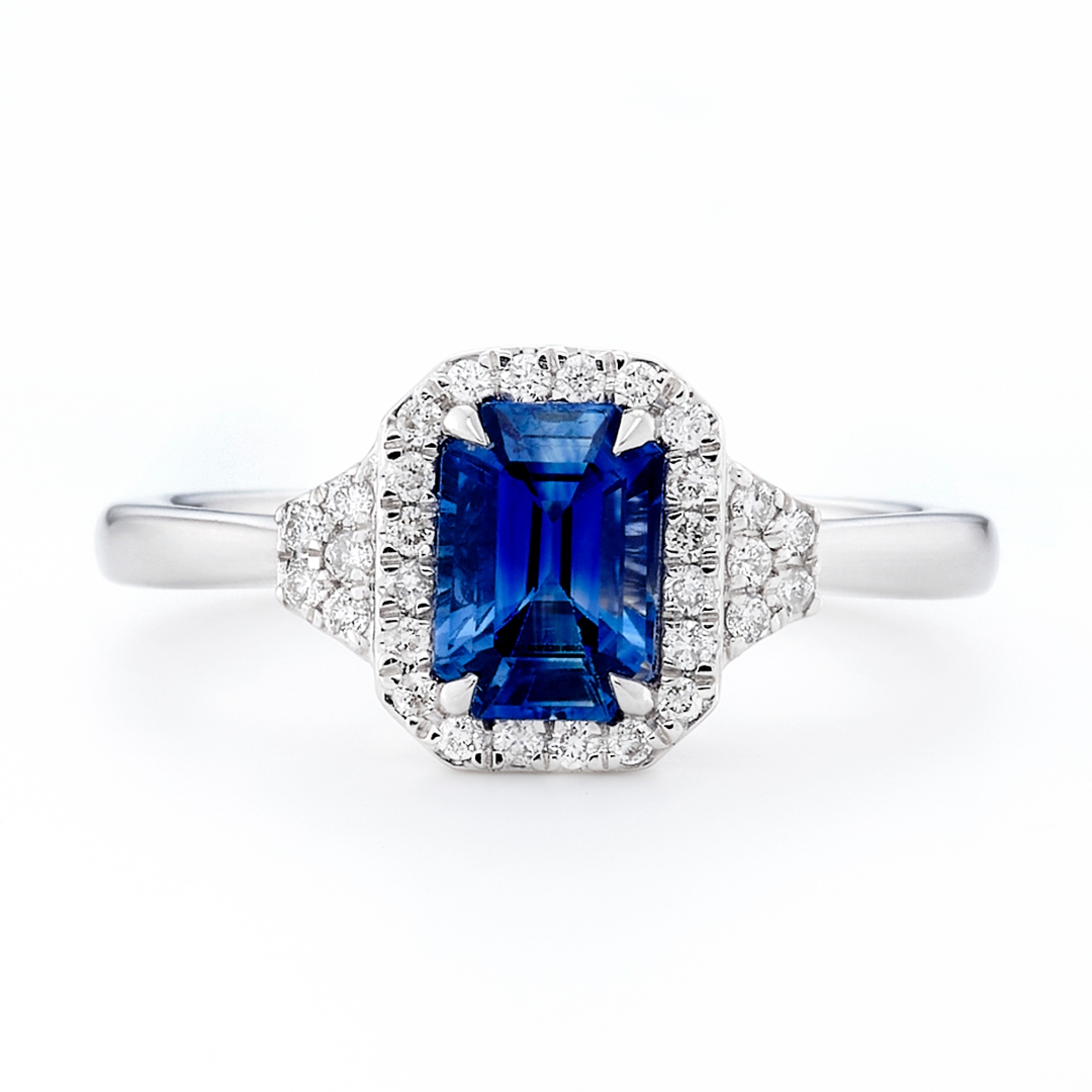 - > Natural Blue Sapphire 1.18ct & Diamond 0.17ct Emerald Shaped Cluster Ring