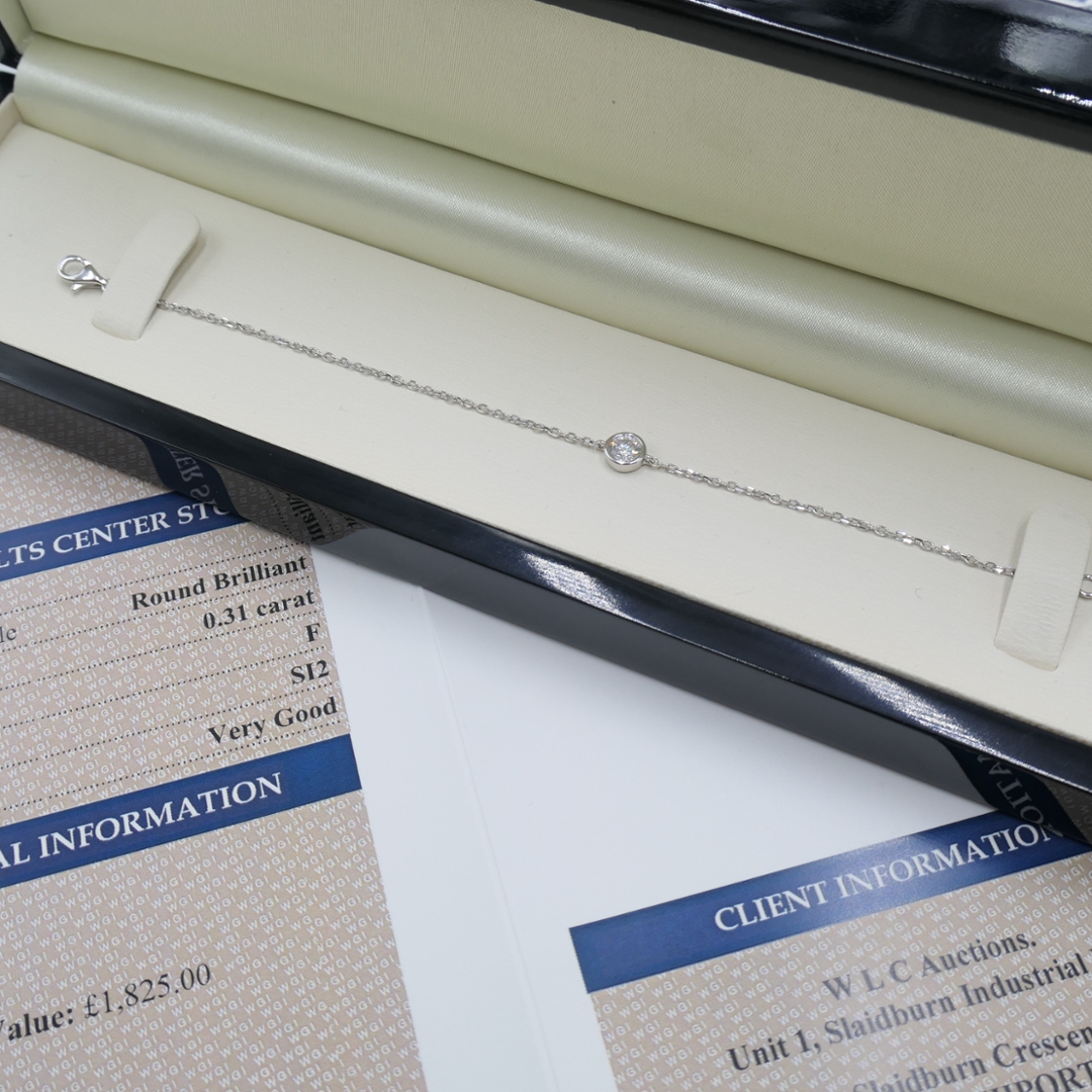This bracelet, valued at £1,825.00, offers beauty and investment potential. The quality of the diamond, coupled with the craftsmanship of the white gold setting, ensures this piece will be cherished for years to come and retain its value, making it a wise investment.