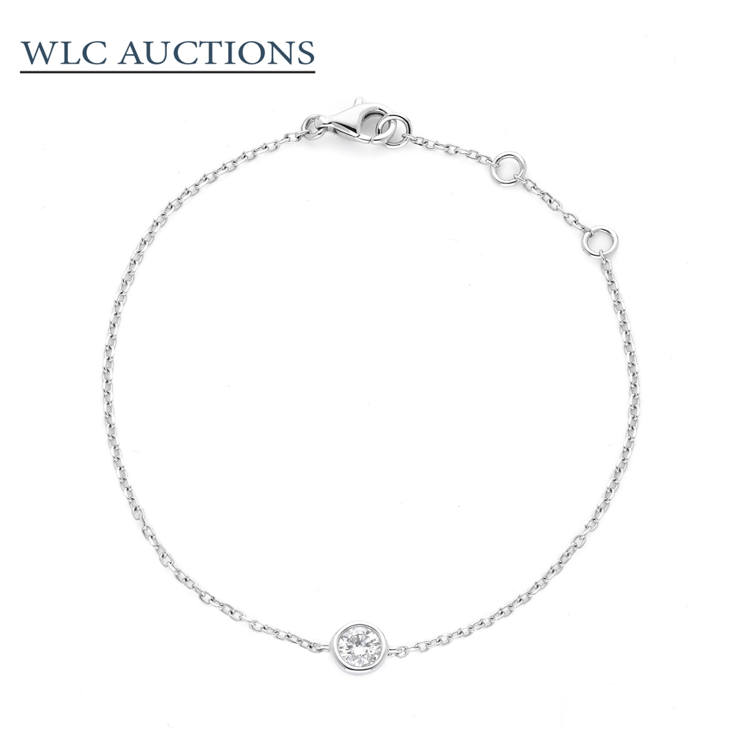A brand-new, unused, certified 18ct white gold bracelet designed to showcase the natural beauty of a single brilliant-cut diamond. This elegant piece exudes timeless sophistication, making it a perfect addition to any jewellery collection. The bracelet’s minimalist design enhances the diamond's exceptional qualities, offering understated luxury for those who appreciate fine craftsmanship.