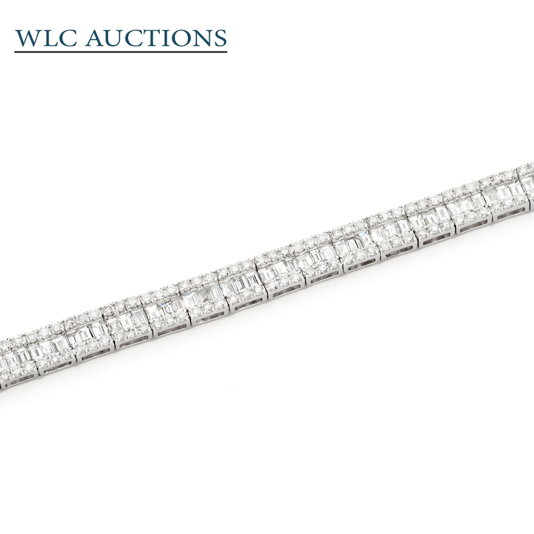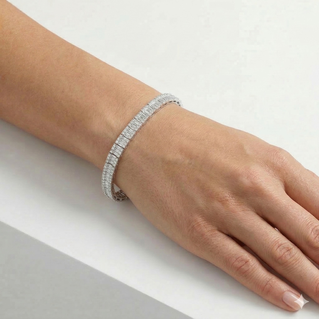 The sleek 18ct white gold setting enhances the natural brilliance of the diamonds, offering an incredible, reflective backdrop that accentuates their pure beauty. Each stone is securely set with flawless precision, ensuring perfect symmetry and long-lasting strength. The bracelet’s refined design flows effortlessly around the wrist, balancing classic glamour with modern sophistication. It is a statement of taste and prestige, ideal for those who appreciate fine craftsmanship and understated opulence.