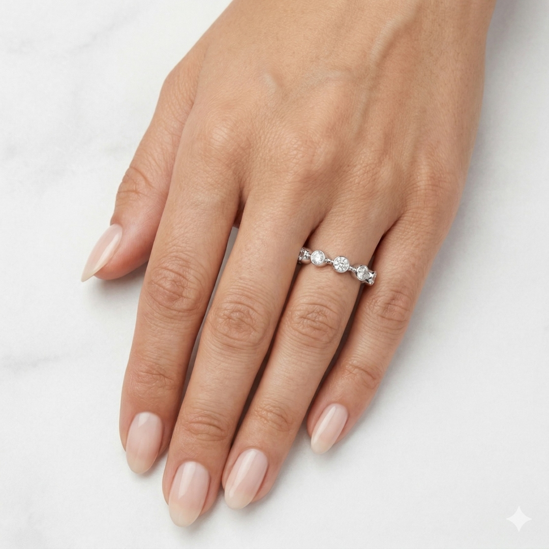 Weighing 4.53 grams, this ring offers a substantial yet comfortable feel, making it ideal for both everyday elegance and special occasions. Its timeless design showcases the beauty of precision craftsmanship, where every diamond works in unison to produce a dazzling effect from every angle.