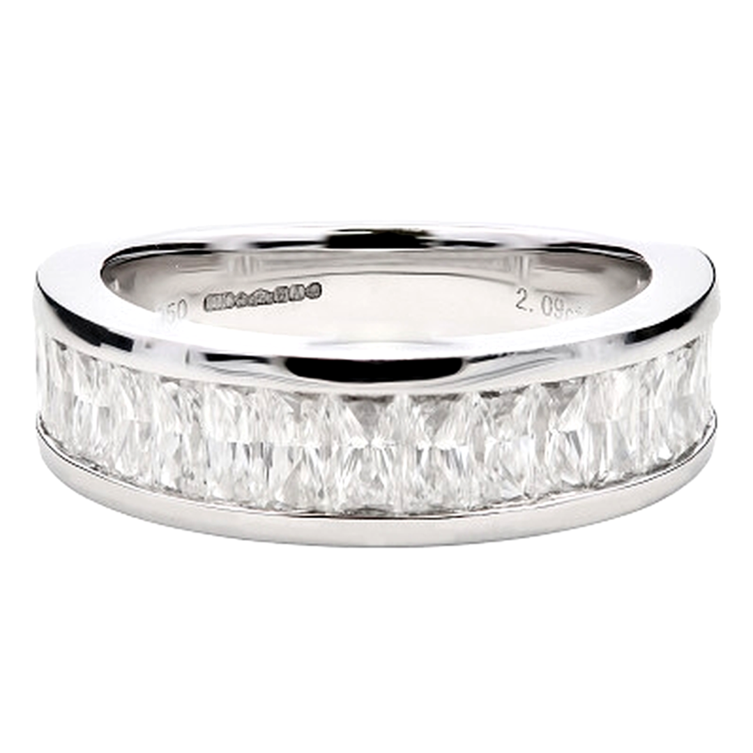 A brand-new, unused, certified natural diamond cluster ring, meticulously crafted in platinum and defined by a striking arrangement of scissor-cut diamonds. The design showcases a cohesive cluster of natural diamonds with a substantial combined weight of 2.09 carats, chosen for their distinctive faceting and bold visual presence. Scissor-cut diamonds are celebrated for their clean lines and architectural character, offering a refined alternative to more common cuts while maintaining impressive light reflection. The platinum setting provides exceptional strength and longevity, enhancing the diamonds with a cool, understated finish that allows their structure and brilliance to take centre stage.