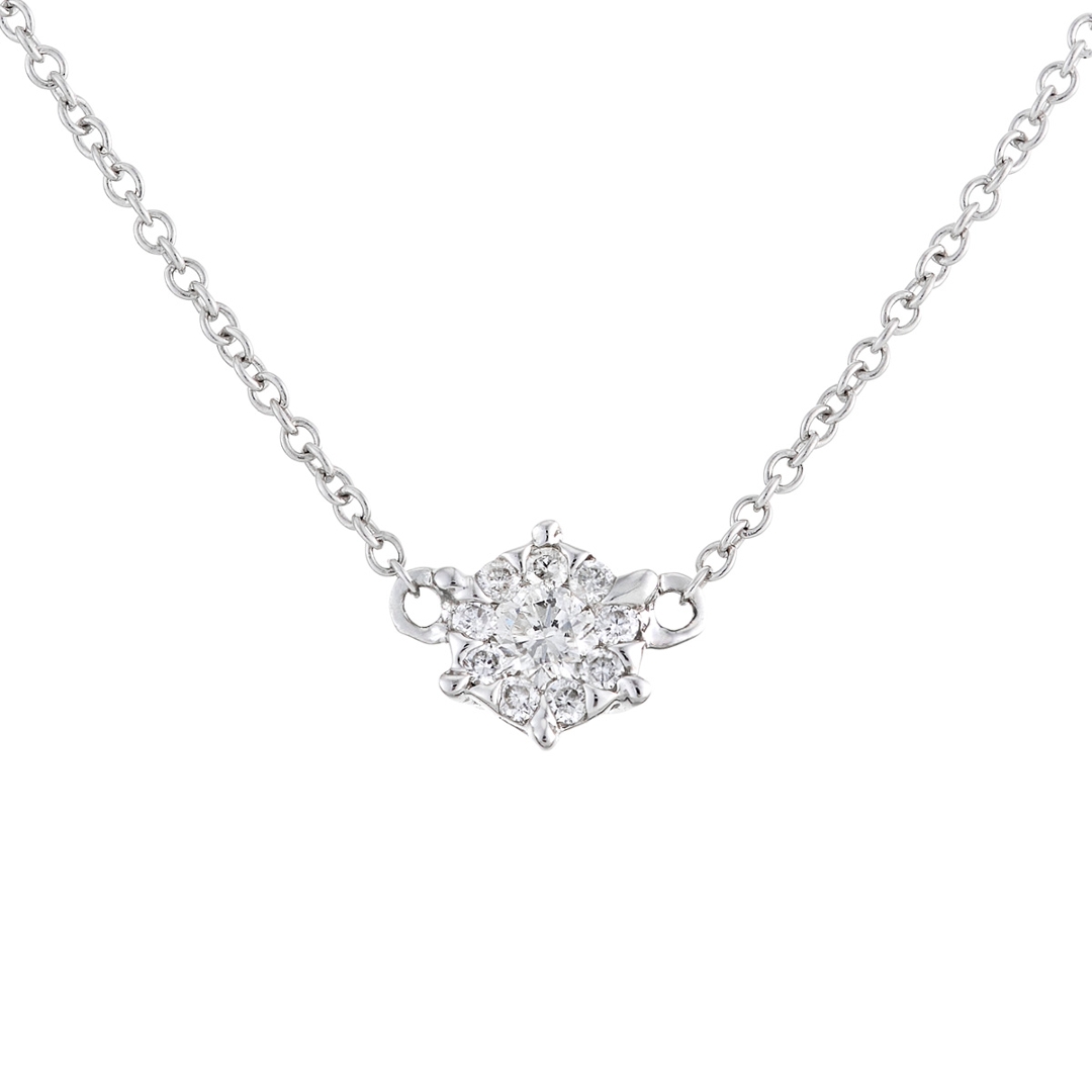 - > Natural Diamond Daisy Shaped Cluster Pendant 0.10ct