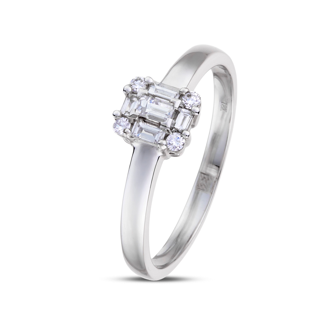 - > Natural Diamond Emerald Shaped Cluster Ring 0.30ct