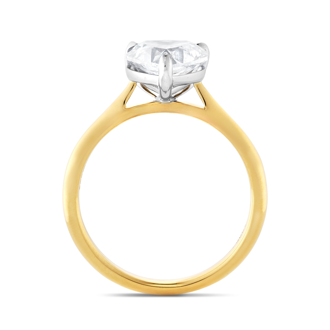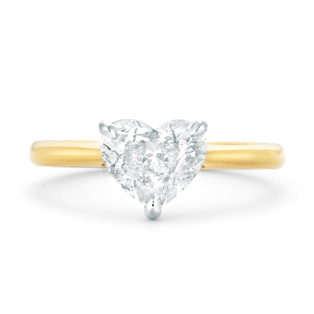A brand-new, unused, certified natural diamond solitaire engagement ring, set with one heart cut diamond at the centre, set in platinum & 18ct yellow gold.