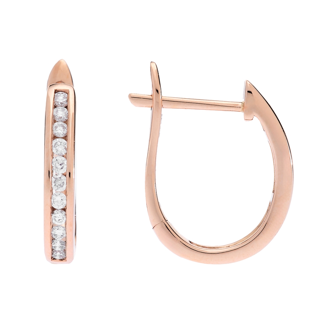 A brand new, unused, certified pair of natural diamond hooped earrings, set with brilliant cut diamonds, set in 18ct rose gold.